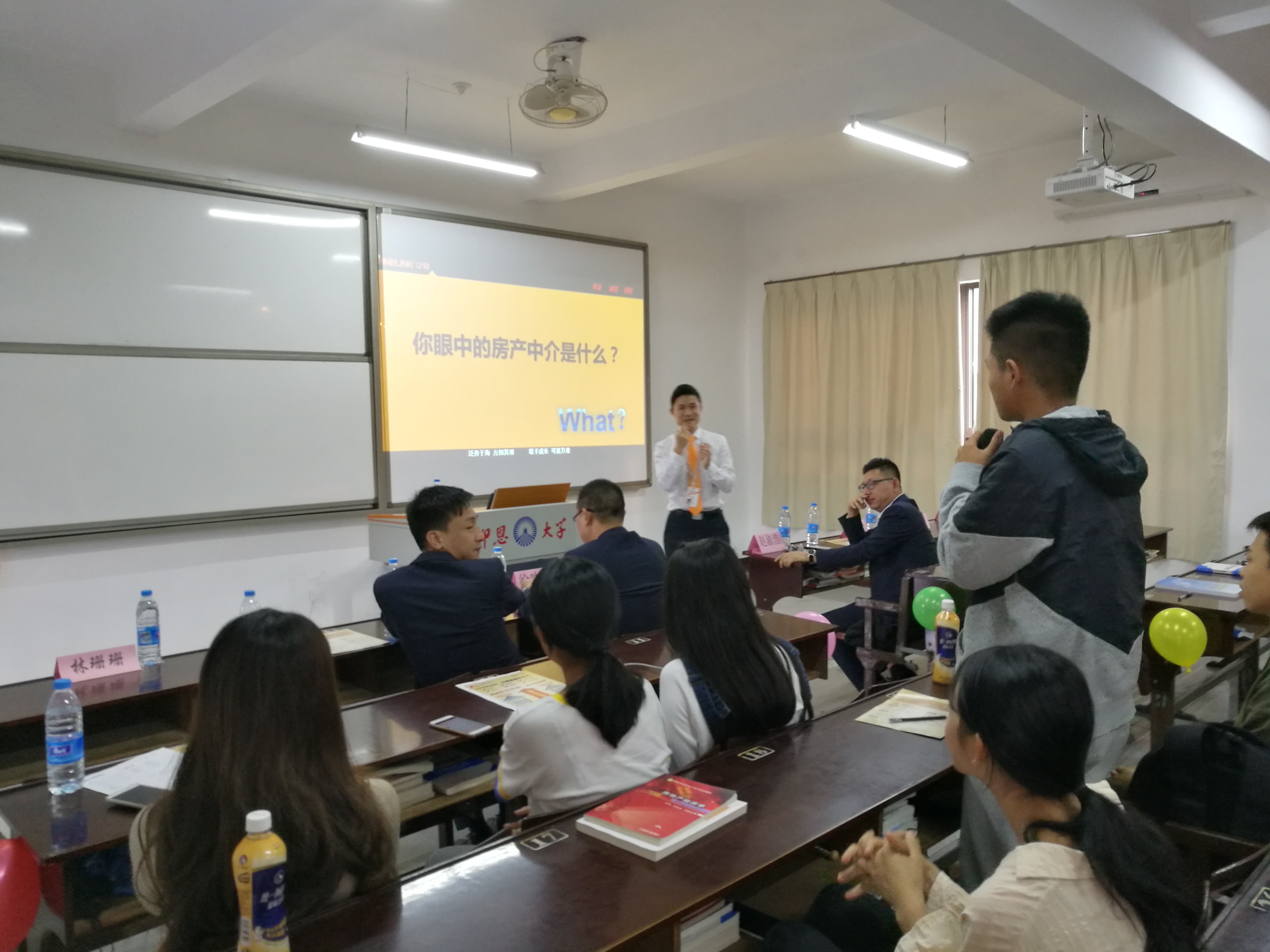 会上,宣讲会讲师赵淑浩与同学们分享了关于近年来房地产的发展趋势和市场前景,并介绍了泛联控股集团的现状和员工福利。期间,同学们积极与讲师互动,现场招聘活动有条不紊的进行着。