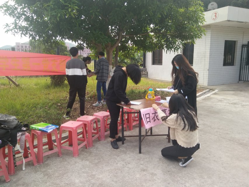 此次募捐活动面向全校师生开展,为方便师生们捐赠,支部同志们分别于新区和昌楼门口、新区女生宿舍门口进行设点。活动中支部成员们分工协作,有的向过往师生宣传此次活动意义,有的对回收的衣物进行筛选分类,力求衣物整洁得体,有的维持现场秩序,使工作开展得井然有序。从支部成员们的认真工作,到师生们的热情捐赠,点滴爱心终将汇聚成生生不息的大爱。