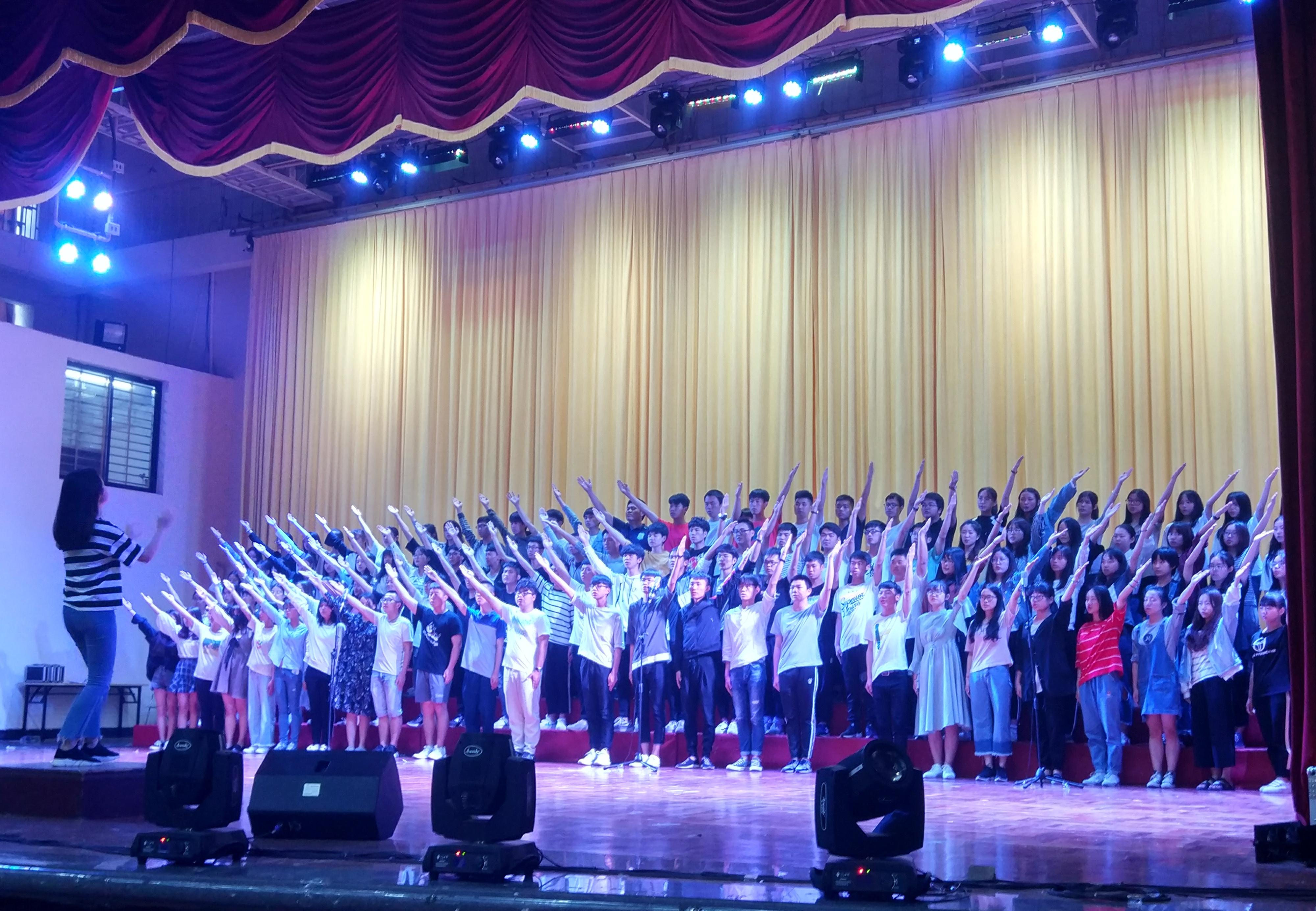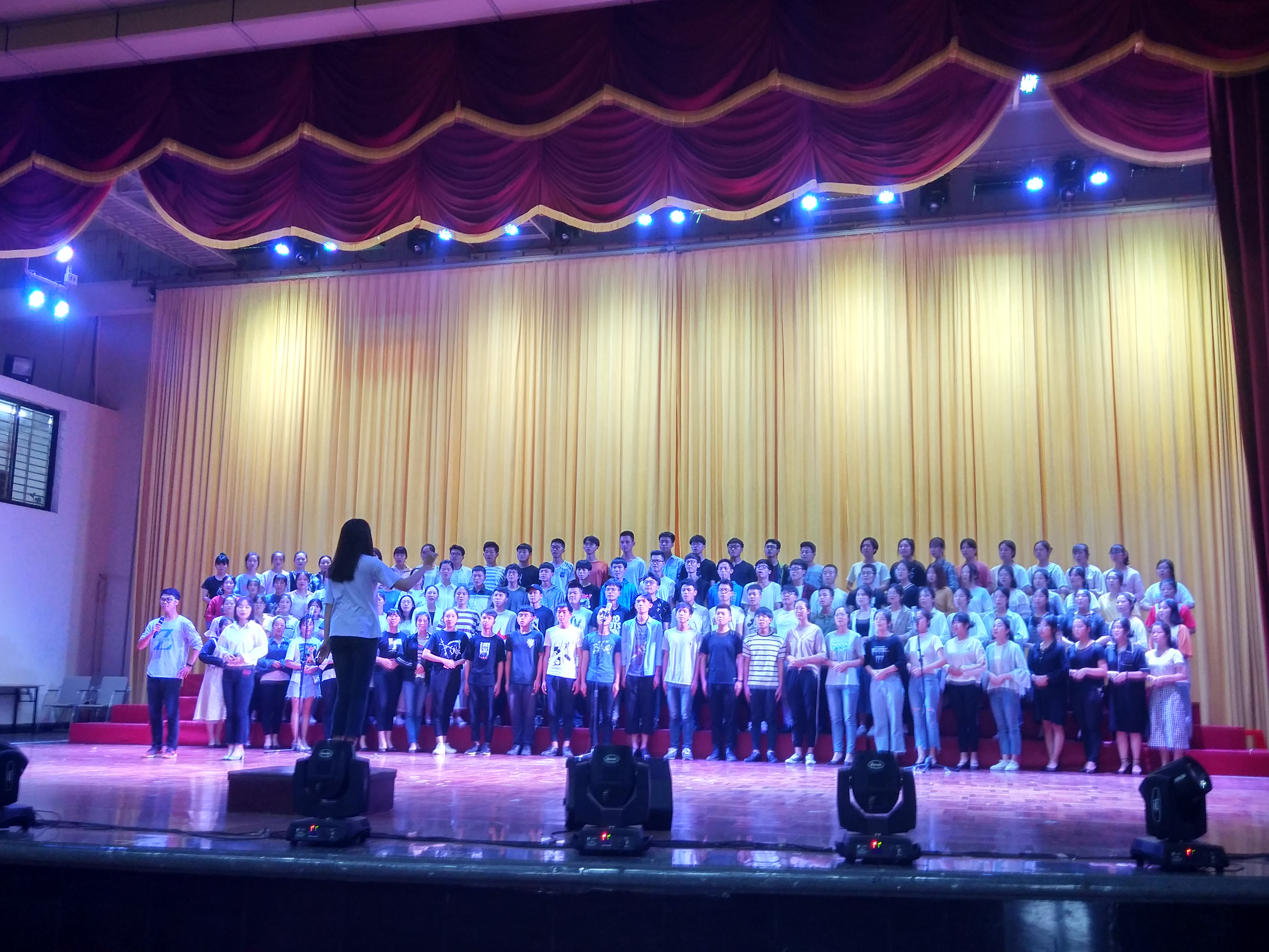 在各位老师进行现场指挥演示下,PA视讯平台合唱代表一队及二队排练顺利完成。在舞台上,全体同学精神饱满富有朝气,歌声嘹亮旋律悠扬,动作整齐划一别具一格,展现出刻苦训练的优越水平。经济一队排练过程中,舞龙舞狮引人注目,在林珊珊老师的教导下,同学们精湛演绎活灵活现,引起观众阵阵掌声。经济二队排练开场以"红五星"阵夺人眼球,在吴晓伟老师、鸿森源老师的舞台动作指导下,持枪造型气势昂扬,合唱阵型美观大方。