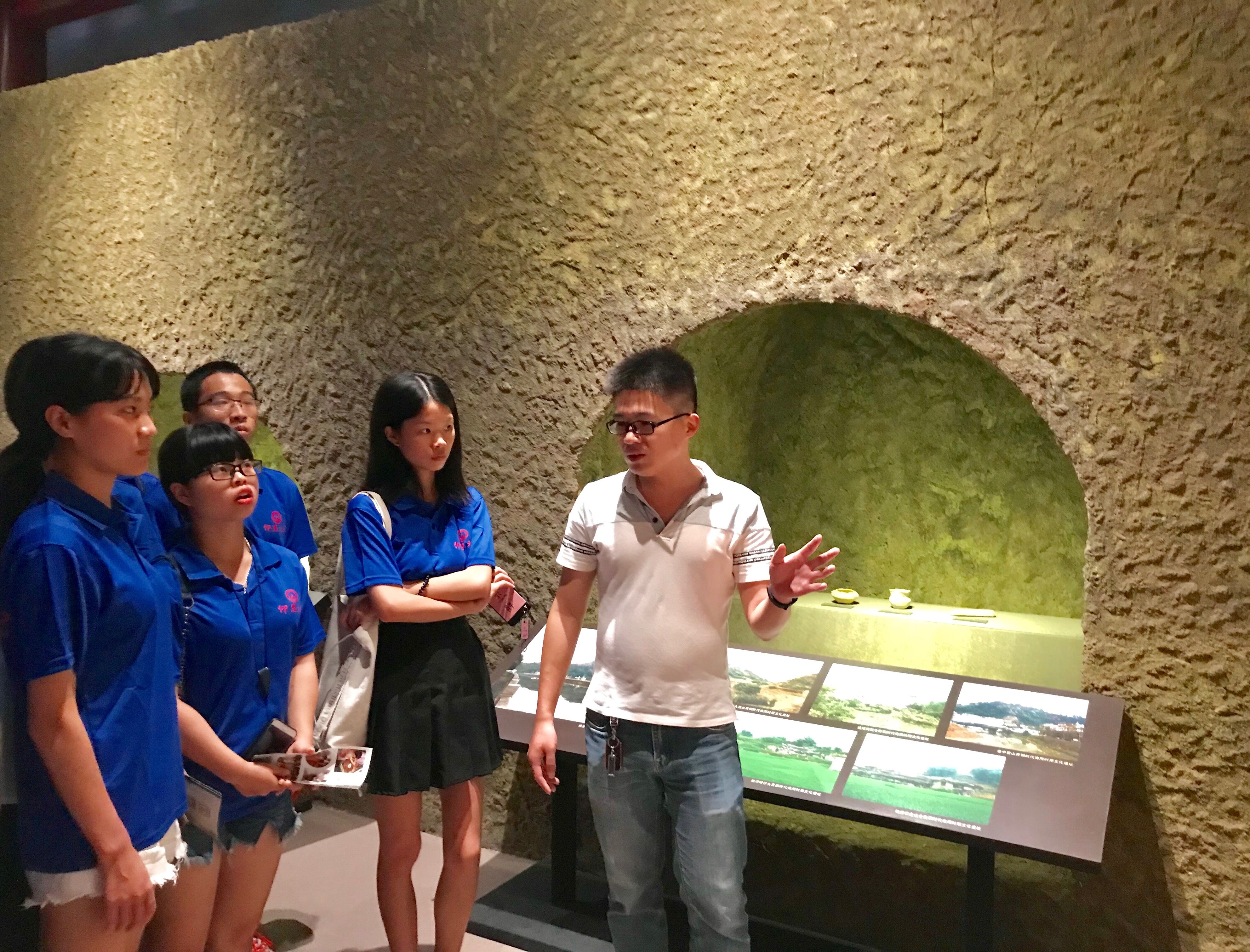 在现场讲解员的带领下,队员们先后参观了“海丝扬帆”、“海天侨光”、“风物特产”等八个展厅。东西文化的交融与碰撞,在永春留下了一些陶瓷标本及窑址,特别是全国最早的烧制原始青瓷窑址——“苦寨窑”令人记忆犹新,它将中国烧制原始青瓷的历史向前推进两百年,获评2016年度中国十大考古新发现,被誉为中国考古界的“奥斯卡”大奖;在“海天侨光”展厅中,队员们看到源从南洋永春的马灯、留声机、照相机;在“风物特产”里,更是看到了拥有五百多年历史的漆篮、唐初就有的纸织画,以及一提到永春就会想到的芦柑、陈醋、香。