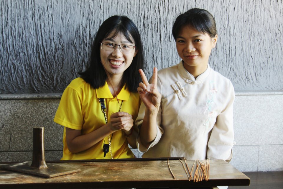 “影堂香火长相续,应得人来礼拜多。”经过五千多年,现代人的生活更加忙碌复杂,却依然保有尊敬祖先神明的美德。实践队员们目睹了彬达香文化创意园区的手搓香和跺香花过程,才知道香取材自然。