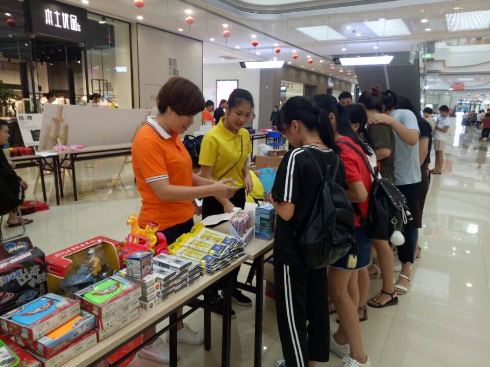 此次活动,实践队队员与县爱心社志愿者、富德生命人寿保险公司志愿者合作分成两部分,一部分作为引导员引领客户前往活动现场,另一部分作为销售人员进行商品销售。活动中,实践队员别出心裁的通过即兴表演、趣味比赛等方式得到路人市民的热烈响应,吸引众多商户购买赞助,为活动现场添加了一道独特的风景线。