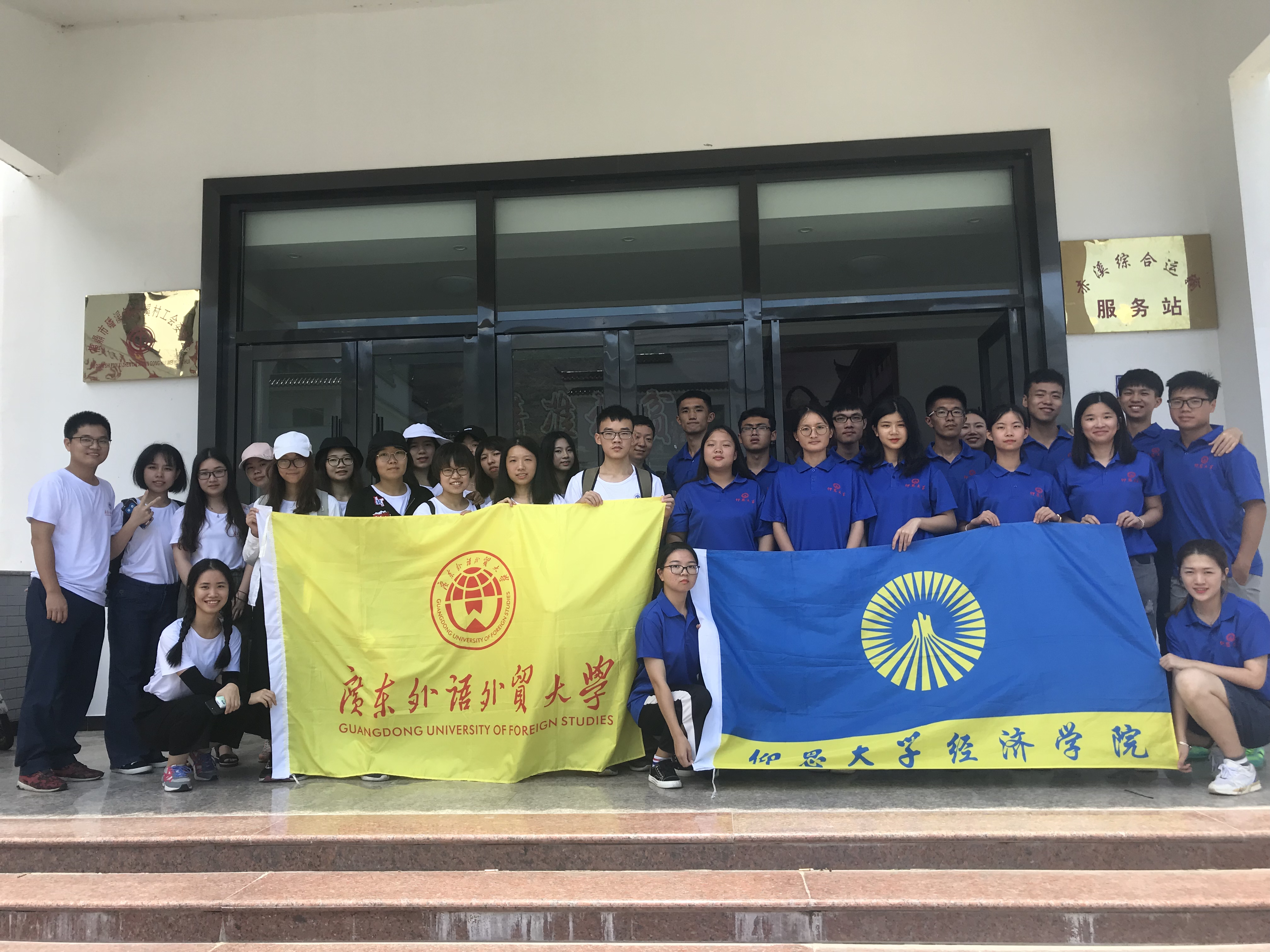(图为实践队员与广东外语外贸大学指导老师进行交流)
