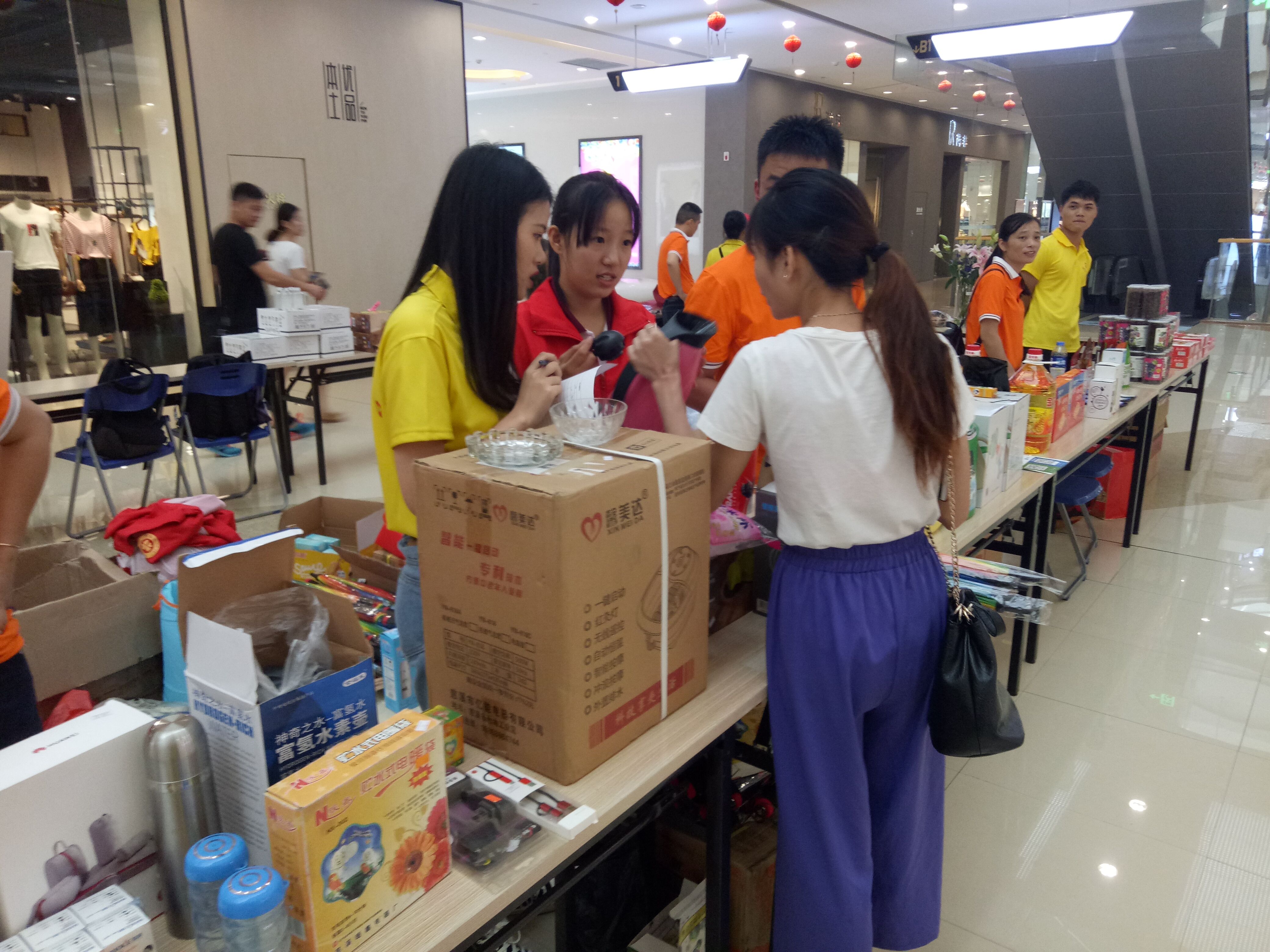 7月21日,PA视讯平台“爱心向行”社会实践队15名同学前往惠安禹洲商业广场1楼举行了“爱心助行 有你更行”爱心义卖活动。本次活动以义捐的形式,由实践队员沿着各个街道走访商家,筹集物资。