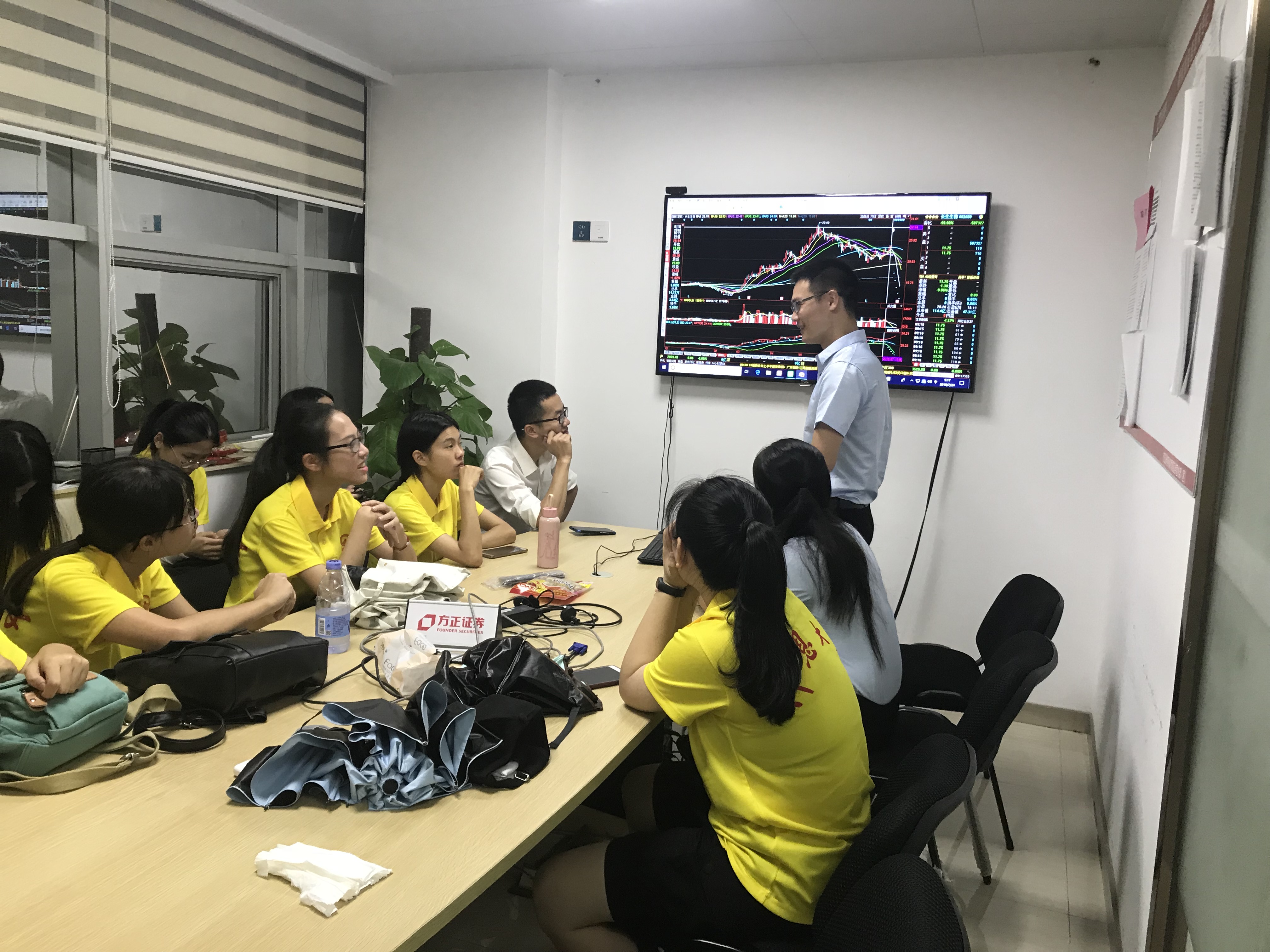股票市场研究不仅仅只是针对股票研究,而更多对股民心理的研究更有利于证券公司发展业务。金融投资市场是一个参与型市场,没有人的参与市场无法独立存在。该公司员工对于心理学这方面颇有研究,主要从心理学经典与证券投资的“晕轮效应”、“霍桑效应”、“责任分散效应”、“鸟笼效应”这四个方面来讲解。在心理测试这一话题中,队员们将自己身临其境—以股民的心理来参与测试,知行合一,投资智慧。在这一过程中,队员们不仅仅加深了对证券市场的了解,更是以不同的形式丰富了活动的趣味性。这让队员们对今后的职业生涯规划更有了明确的目标。