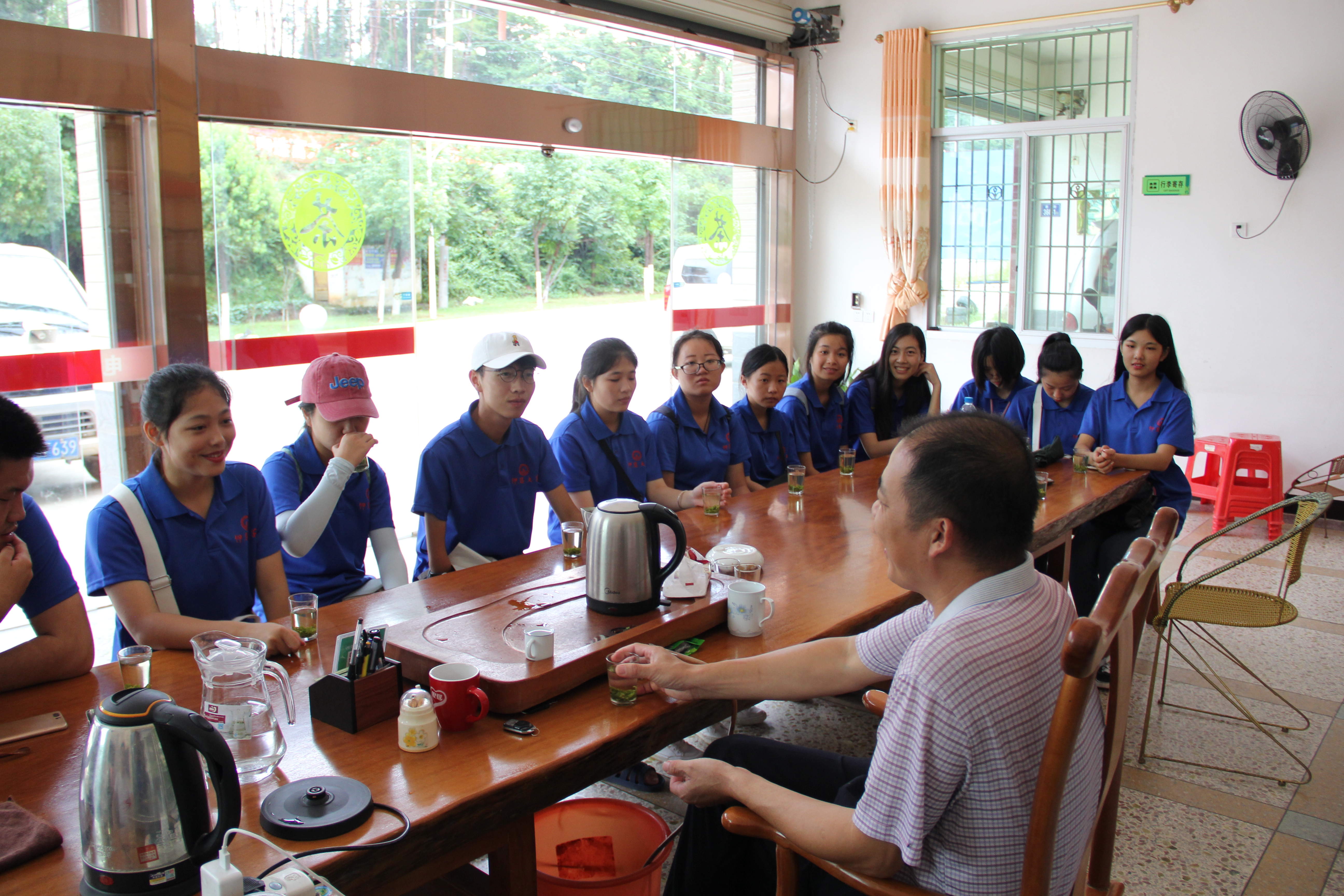 实践队员走进桃溪镇新礤村新宝茶场,在王新宝书记的带领下一同爬上山顶,感受“林在山中,茶在林中,家在茶中,人在画中”的多环式生态茶园。书记结合党建背景,从乡村振兴的角度入手,与实践队员们分享自己多年开展党建工作的心得。倡导要以党员为中心辐射点,加强党员之间的交流与联系,建立多个党员示范基地,以“传帮带”的方式带动乡村发展,抱团式带领村民致富。