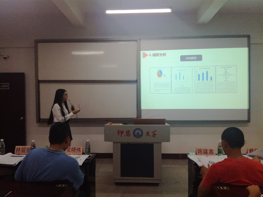 答辩讲台上,实践队主讲人流畅的演讲,入情的言谈呈现其团队对实践课题的深入探究及针对问题团队的独到看法。其中,延香实践队通过调查永春香产业在新政策下的转型与发展,发现香产业存在的问题,并总结提出了关于这个行业的思考。证实践出真知,以行动化难题,获得评委老师的一致好评。