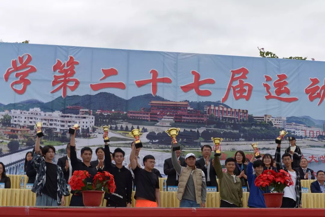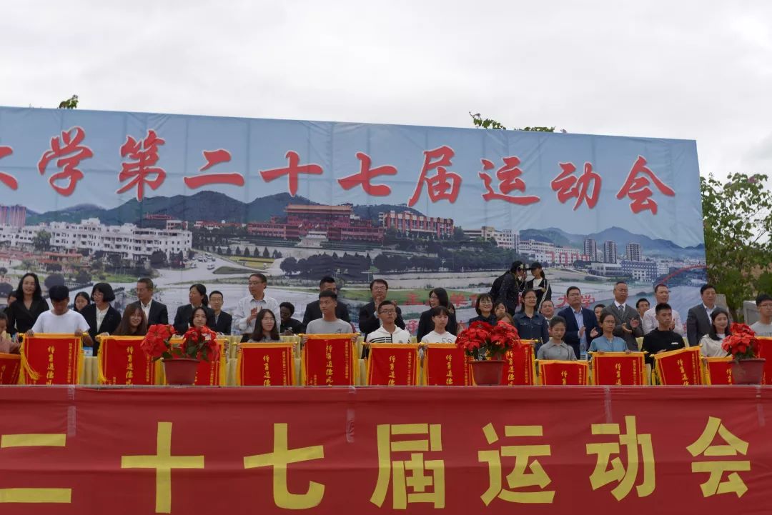 11月17日上午,公司第二十七届运动会闭幕式于第三教学区体育场举行。在校校领导,各院(系)、部门负责人,外籍教师代表等出席了闭幕式。此次运动会,全校近2800名师生参加了篮球、排球、足球、网球、创意啦啦操、跳绳、拔河、田径等八大项47个小项的比赛。