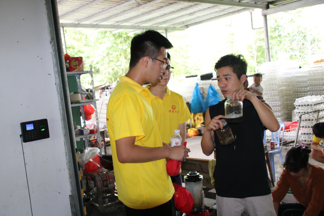 (图为负责人为实践队队员介绍金线莲成苗与炼苗中的区别)