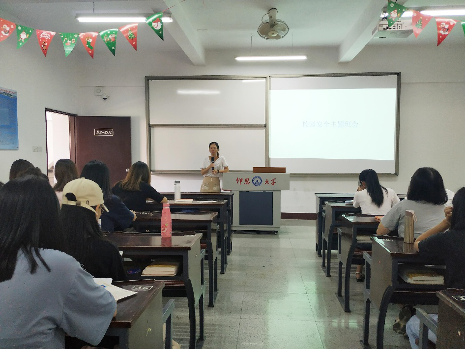 为增强同学们的安全防范意识,提高同学们的安全防范能力,全面普及校园安全常识,10月10日下午班会课,公司各班级于仰恩楼各班会教室开展“校园安全”主题班会。