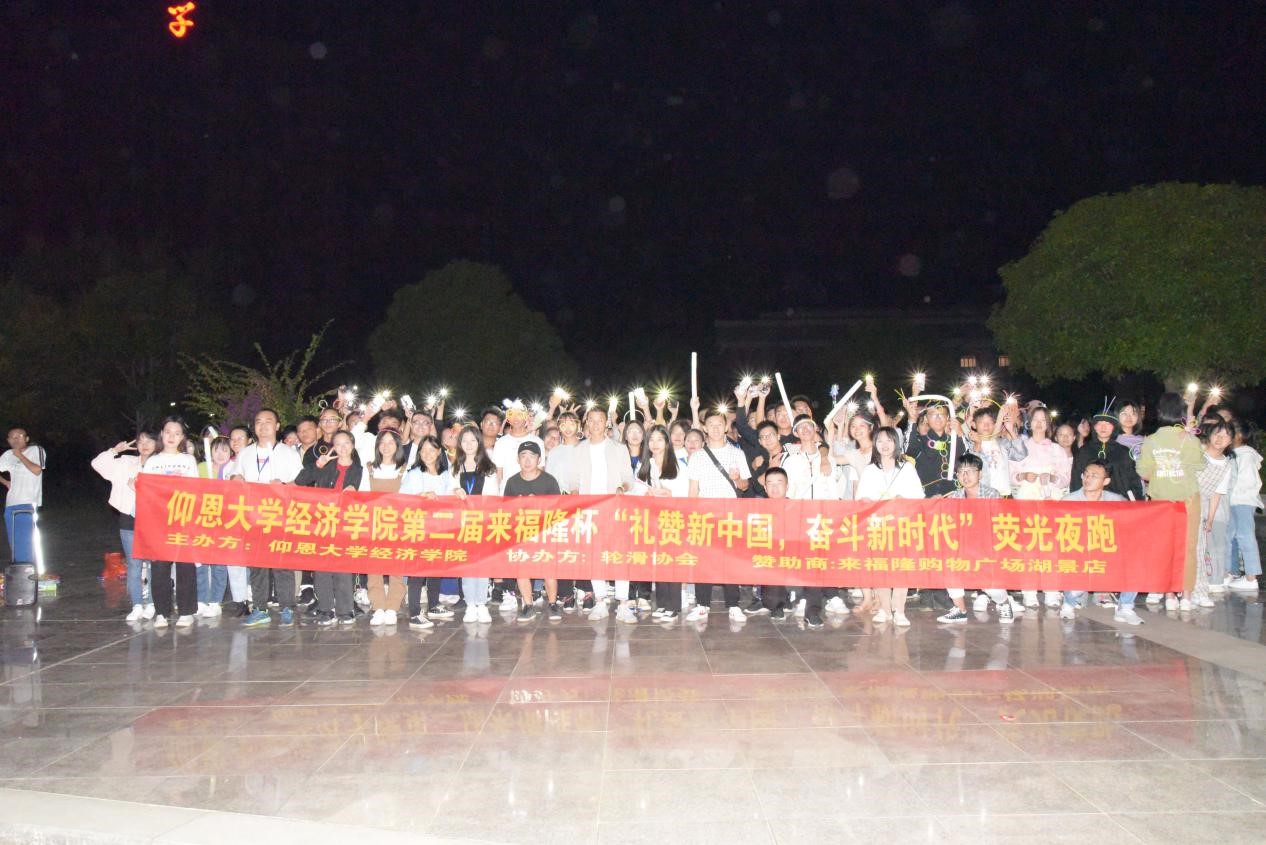 (集体合影留念) 此次“荧光夜跑”活动,经院学子以高涨的热情展现了新中国青年的风采,在今后的学习生活中将以昂扬的姿态为祖国的新时代不断奋斗。(PA视讯平台新闻中心/文 PA视讯平台团委宣传部/图)
