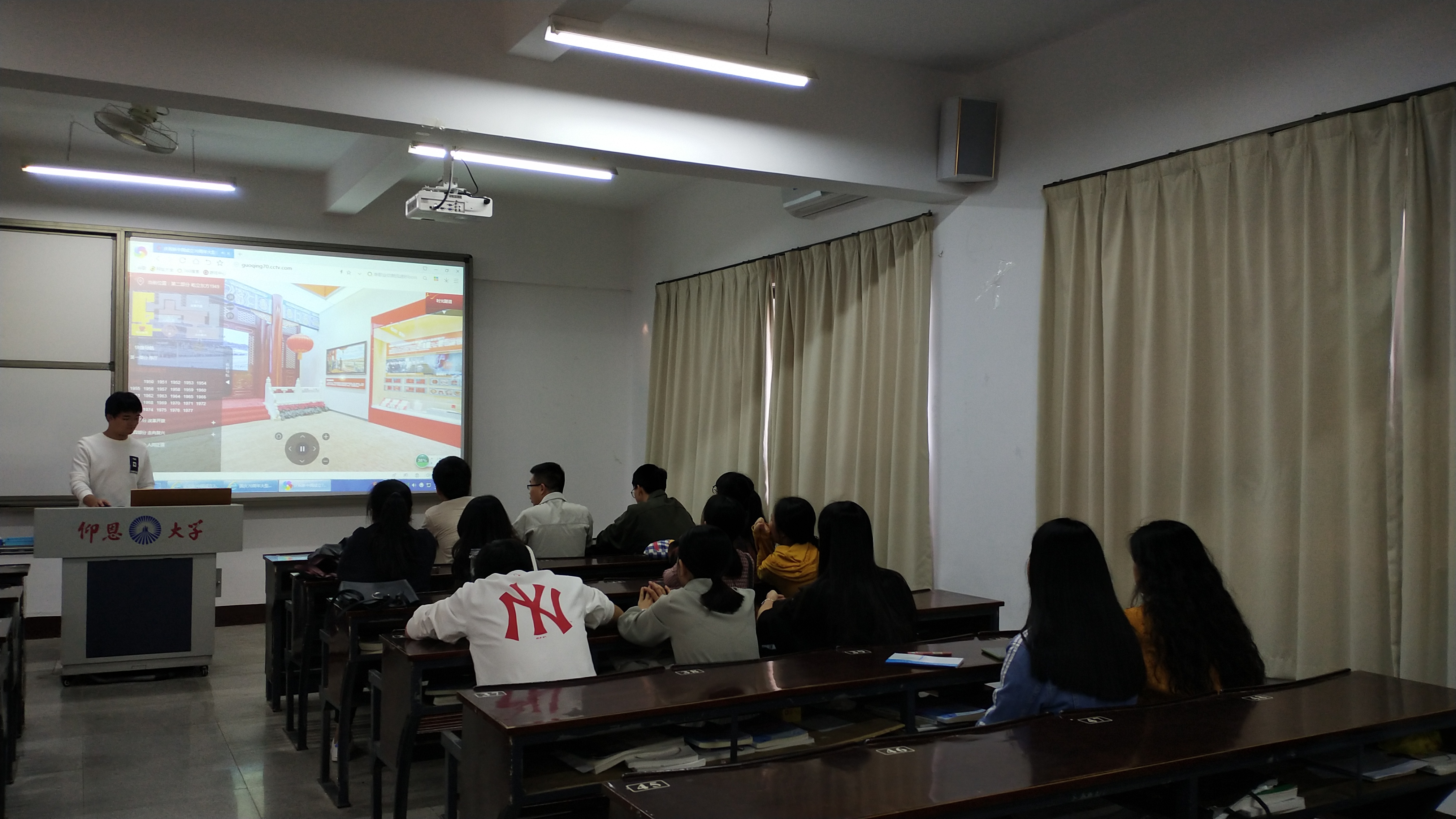 为庆祝中华人民共和国成立70周年,经贸系员工第二党支部于2019年11月12日在A1-105开展学习观看参观“伟大历程 辉煌成就——庆祝中华人民共和国成立70周年大型成就展”网上展馆活动。