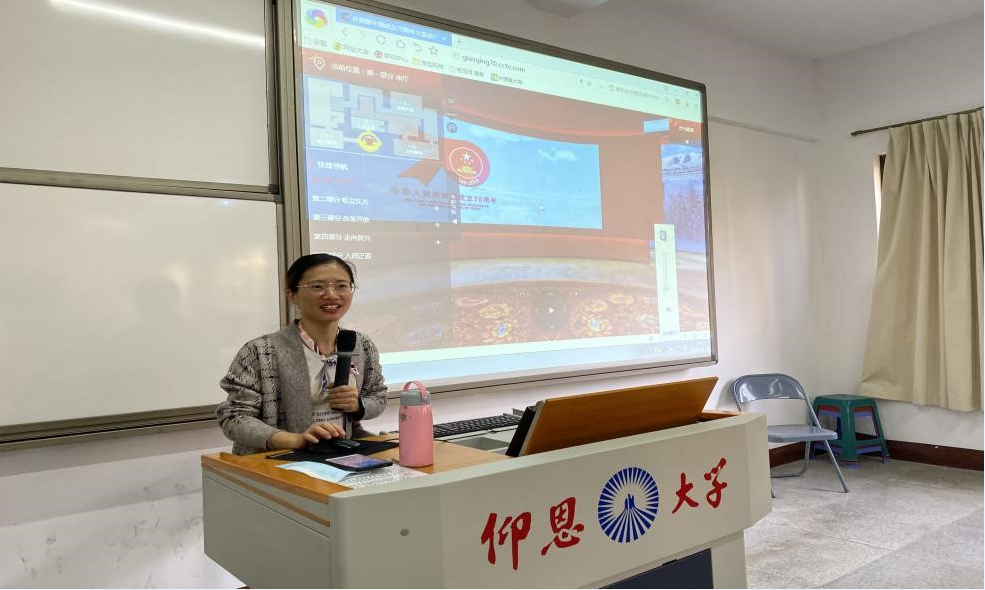 11月13日,为加强党员爱国主义教育,弘扬爱国主义精神和强化“不忘初心牢记使命”意识,金融系员工第一党支部于仰恩楼A3-101观看了“伟大历程 辉煌成就--庆祝中华人民共和国成立70周年大型成就展 ”网上展馆,并通过座谈交流的形式深化学习教育。金融系员工第一党支部组织委员何丽玲老师,以及金融一支全体预备党员参加本次活动。