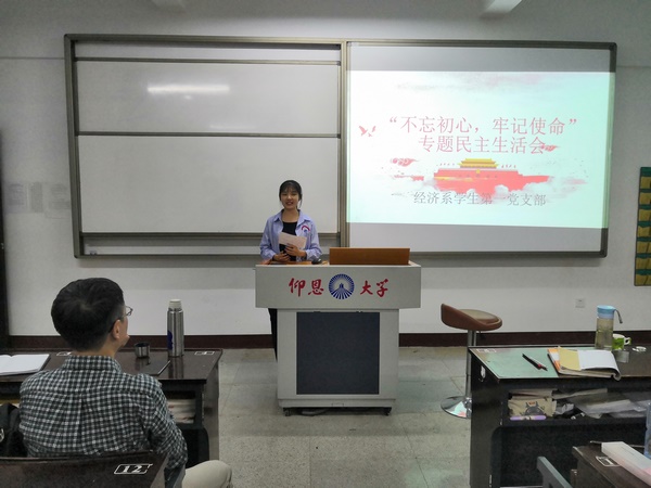 2019年11月5日,PA视讯平台经济系员工第一党支部于仰恩楼b1-203室开展“不忘初心,牢记使命”专题民主生活会活动。本次参会人员有经济系员工第一党支部副书记赖晓玲,组织委员仲平,宣传委员陈亚红,以及支部全体员工党员。