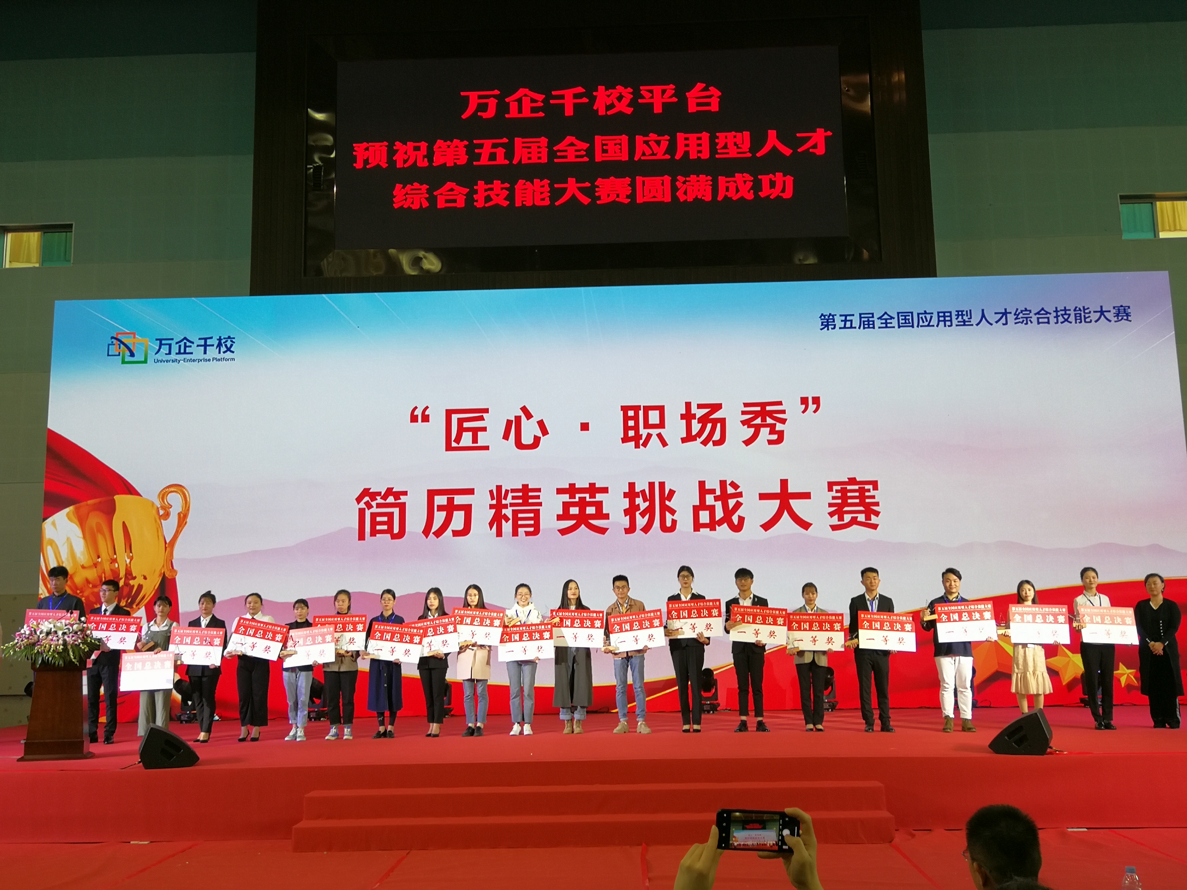 (图为颁奖典礼现场) 第五届全国应用型人才综合技能大赛由中国国际经济技术合作促进会、海口市人民政府、世界职业教育大会暨展览会组委会联合主办。为公司员工提供了良好的展示平台,通过大赛促进了员工就业能力素养的提升。(赖桂全/图文)