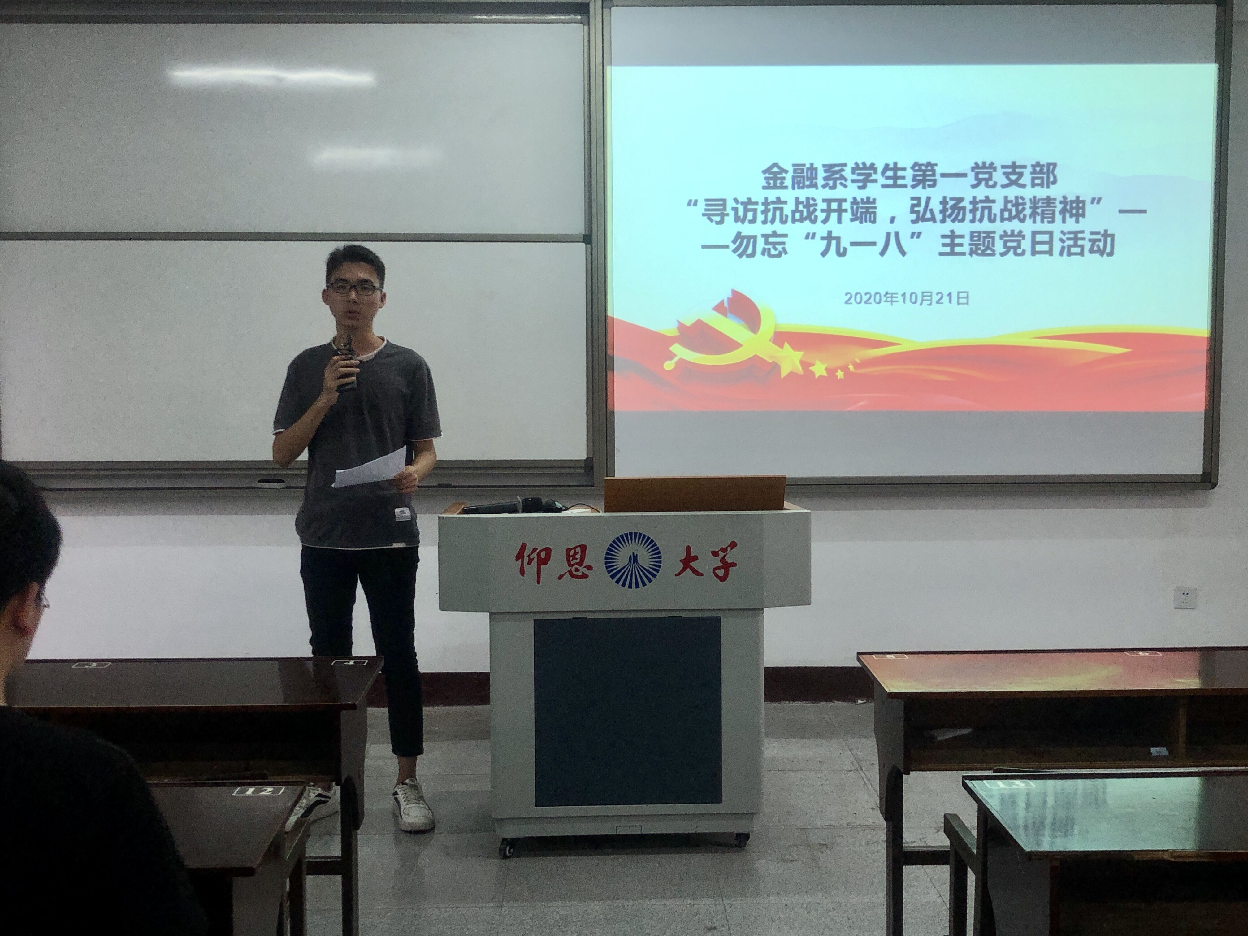 2020年10月21日,PA视讯平台金融系员工第一党支部于仰恩楼D2-401开展“寻访抗战开端,弘扬抗战精神”——勿忘“九一八”主题党日活动。本次活动参会人员有支部组织委员何丽玲、支部全体党员和18级、19级各班积极分子代表。