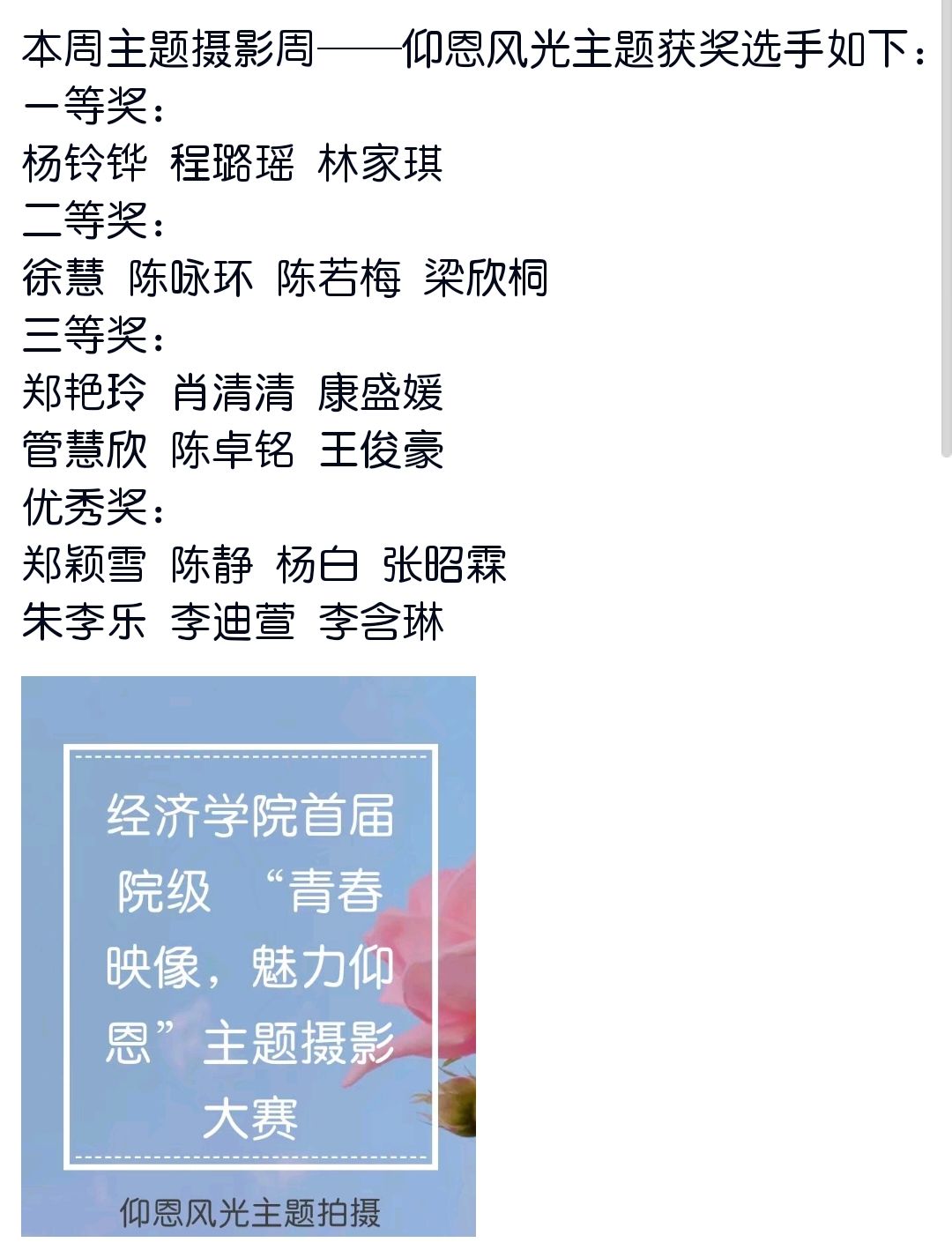 留下青春年华的映像,分享仰恩独特的魅力。此次摄影大赛,不仅为经院学子提供了一个能够表达对仰恩的热爱、对生活的感恩、对内心的感悟以及对美的发现的平台,还提高了校园文化建设,对同学们的道德修养和人文情操的锻炼具有重大意义。(PA视讯平台新闻中心/图文)