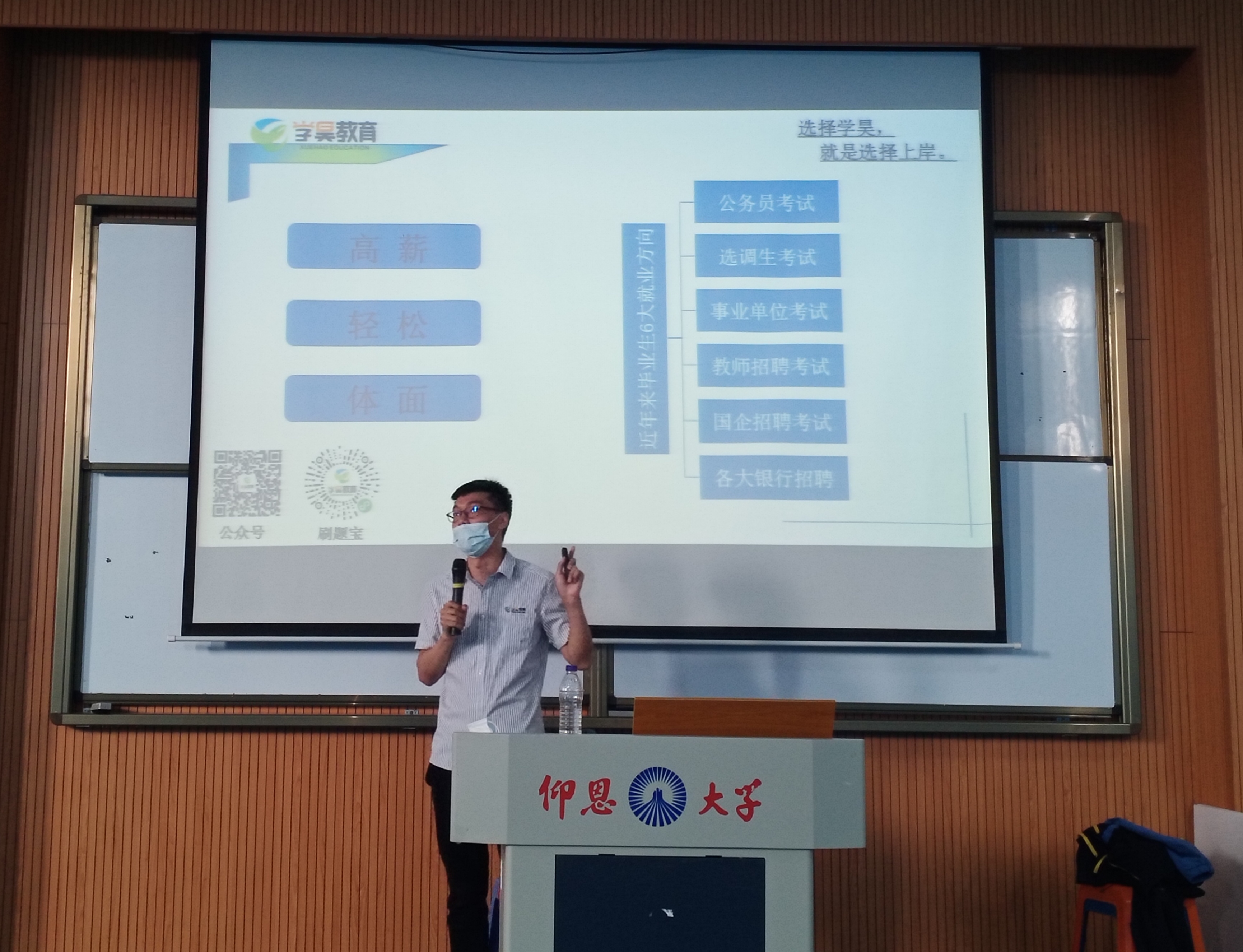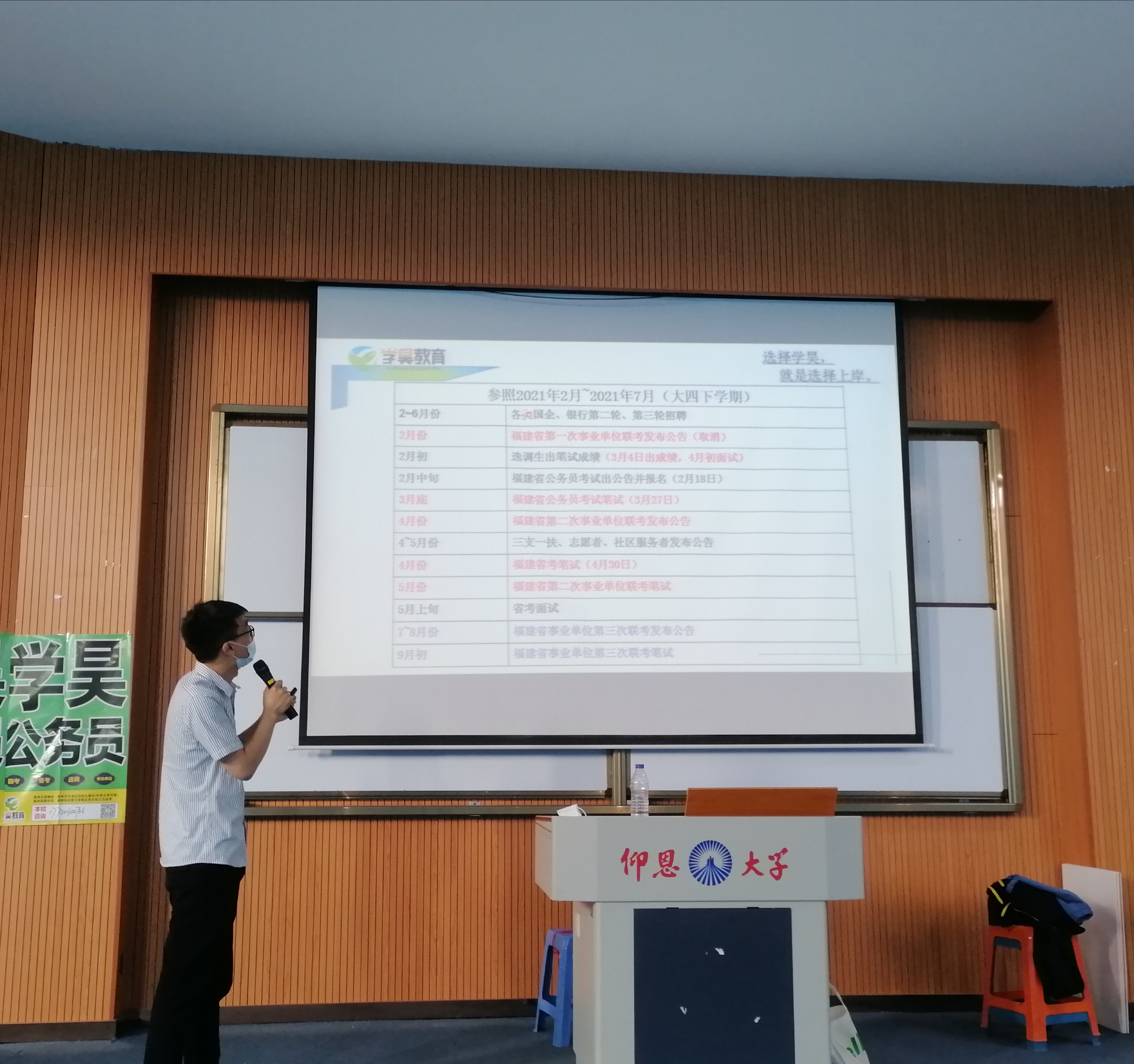 为使公司学子加强应考能力,提升就业质量,2021年3月17日下午,由PA视讯平台承办、PA视讯平台就业指导工作坊协办的公职类备考讲座于新区和昌教学楼海纳讲堂开展。本次讲座由学昊教育厦门分校董事长李松主讲。
