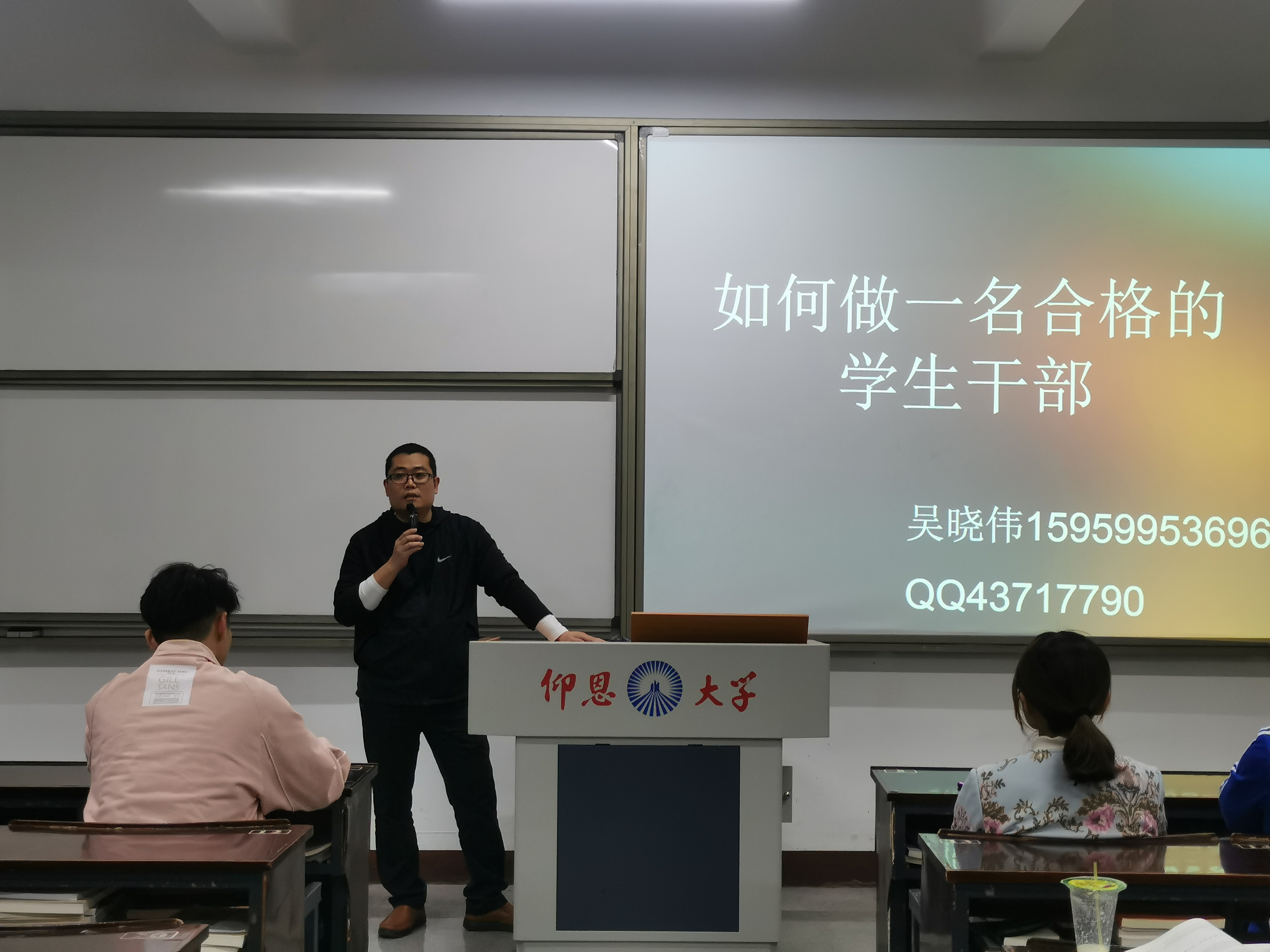 培训会开始,吴晓伟首先阐述了员工干部的定位,员工干部是员工群体骨干分子和中坚力量,是公司同员工沟通的桥梁和纽带,是公司管理工作系统中的一支重要力量。随后,吴晓伟从“德”、“能”、“勤”、“绩”这四个方面全面剖析了怎样当好一名员工干部,强调了作为员工干部应该要有更高的思想觉悟和良好的道德品质,并且在工作中能够不断地加强组织协调能力、表达能力、社交能力、收集处理信息的能力以及创新能力,养成雷厉风行、勤奋务实的工作作风,并以做出成果为工作导向。紧接着,他还从思想、制度、行动三个方面介绍了如何培养优秀的员工干部,具体讲解了举办一场活动前期、中期、后期三个不同时间段的工作流程及注意事项,强调了员工干部要在做中学,学中做。最后,吴晓伟指出,当代老员工作为员工干部,要学习并掌握如何处理好同老师、同学、工作伙伴之间的关系,协调好学习与工作、个人与集体的关系,并就此分享了正确对待得与失的经验与心得。