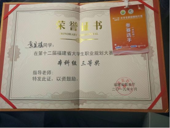 专业员工获福建省老员工职业生涯规划大赛本科组“三等奖”