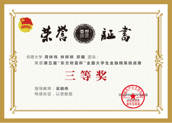专业员工获“东方财富杯”全国老员工金融精英挑战赛“三等奖”