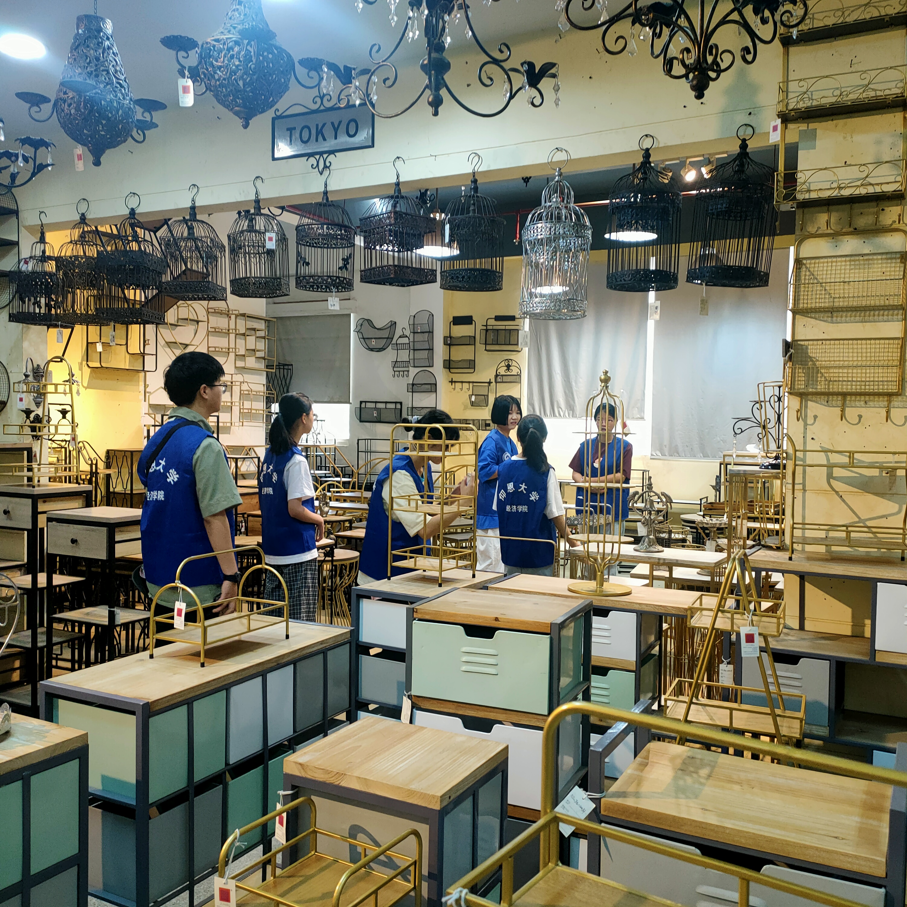 实践队来到聚丰工艺品有限公司的分厂,参观了各式各样的藤铁工艺品、家具和雕塑品。在相关负责人介绍下,队员们了解到安溪竹藤编技艺的悠久历史。竹藤编作为一项国家级非物质文化遗产,最初是以竹制品为主,其真正的雏形要从1971年才出现,作为主材料的竹逐渐被藤取代,直到上世纪90年代,竹藤工艺迅速向整个安溪辐射,竹藤加工企业也逐渐增多。