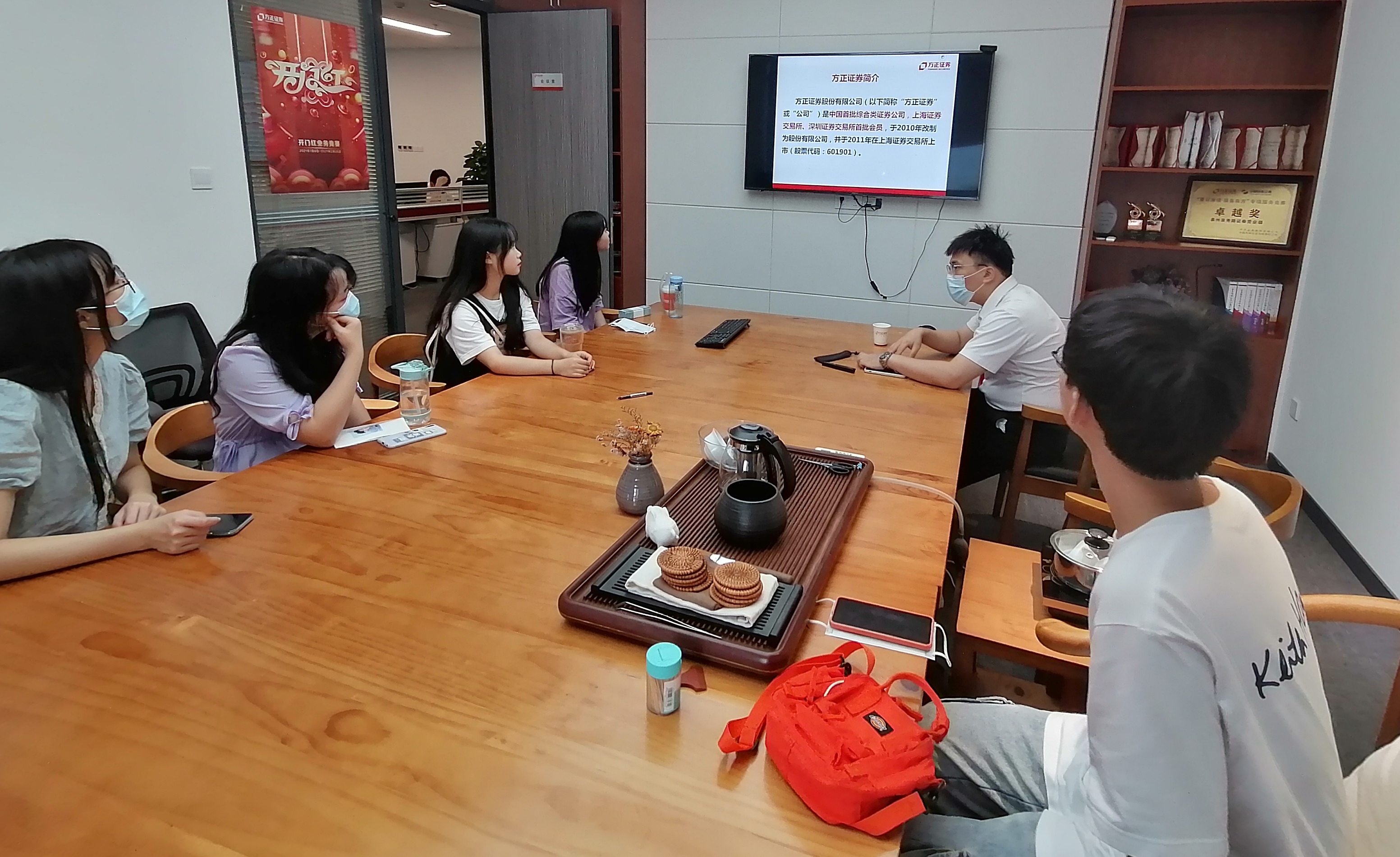 2021年8月11日PA视讯平台胜券在握赴方正证券暑期实践队赴方正证券股份有限公司津淮街证券营业部学习了解方正证券的主营业务,继续分析股票细节并对打新股打新债进行延伸学习。