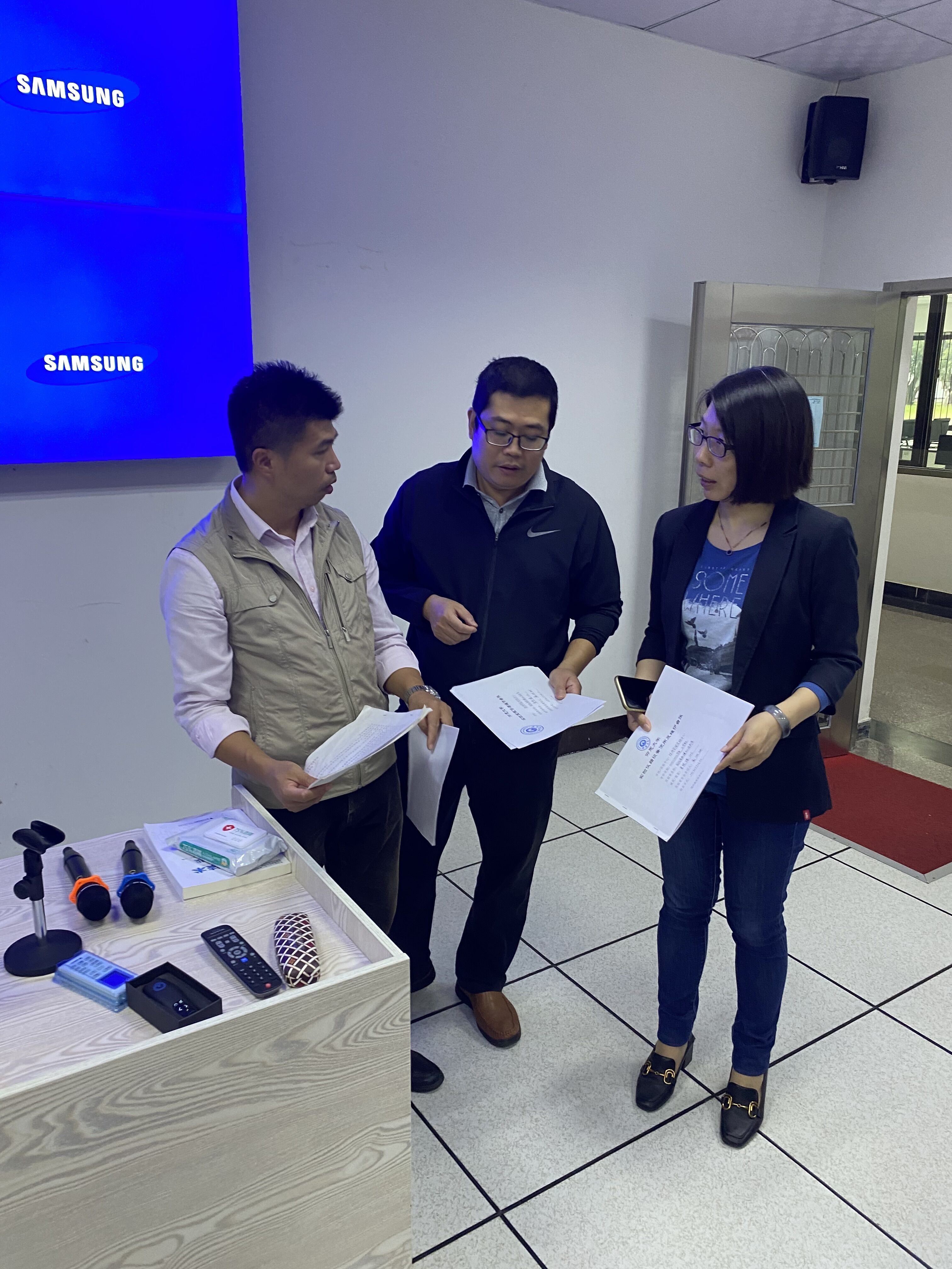 图2 讨论实验仪器设备安全维护问题 本次检查由公司党政领导班子及实验中心工作人员全程参与组织检查。检查组以实地走访查看等形式对普照楼的教学实验室、实训场所进行了全面检查。重点对实验室安全设施、设备环境等进行专项检查。通过检查发现,公司实验室大部分实验室干净整洁,布局合理,规章制度上墙,警示标识明显,安全责任到人,总体情况良好。