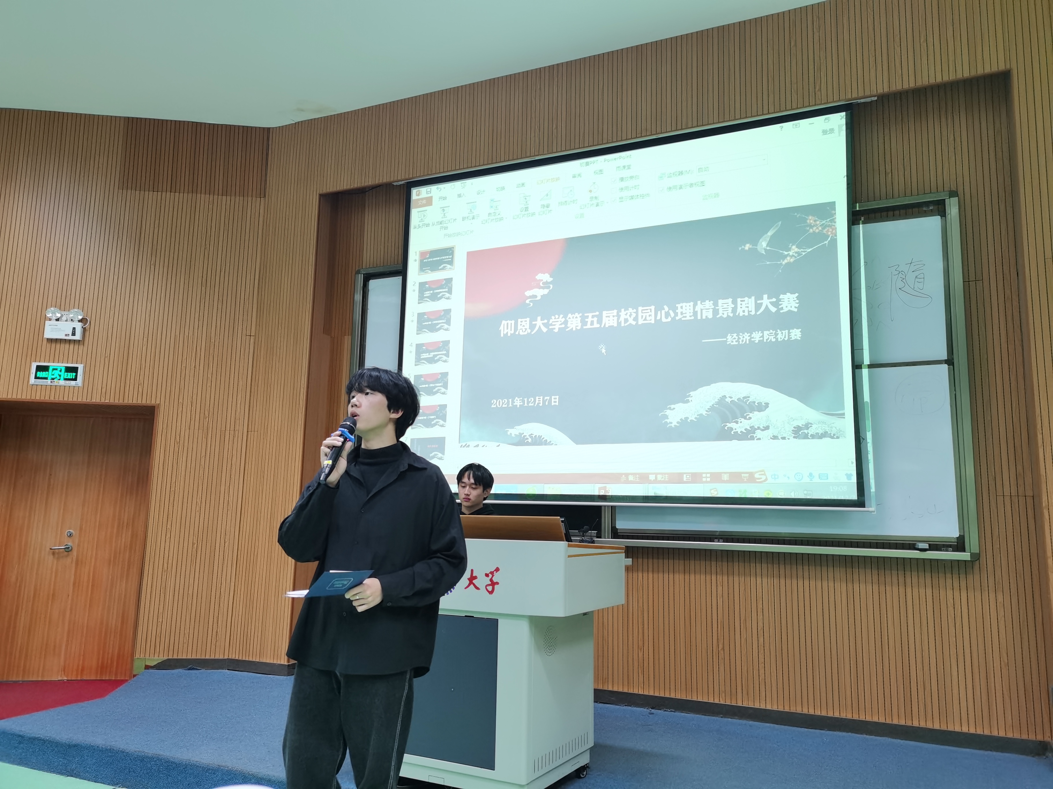 图 心理情景剧比赛现场 此次心理情景剧比赛共有五个作品展示,分别是由21国贸1班的《你值得拥有这世间美好》、21经济1班的《转身便是阳光》、21经济2班的《我们都是山顶的太阳,无需凭借谁的光》、21金融4班的《阳光下的泡沫》,以及21国贸2班带来的《七情梦》。各队伍在在表演过程中,通过精彩的情节设计、生动的语言动作,巧妙地体现剧情人物的细微的心理变化。让现场评委观众透视问题本质,引导明确症结所在,领悟其中的道理,受益颇丰。评委通过从主题、内容、表演、剧本等方面进行点评、打分,最终21经济2班脱颖而出,获一等奖,21经济1班获二等奖,21国贸2班、21金融4班、21国贸1班获三等奖。