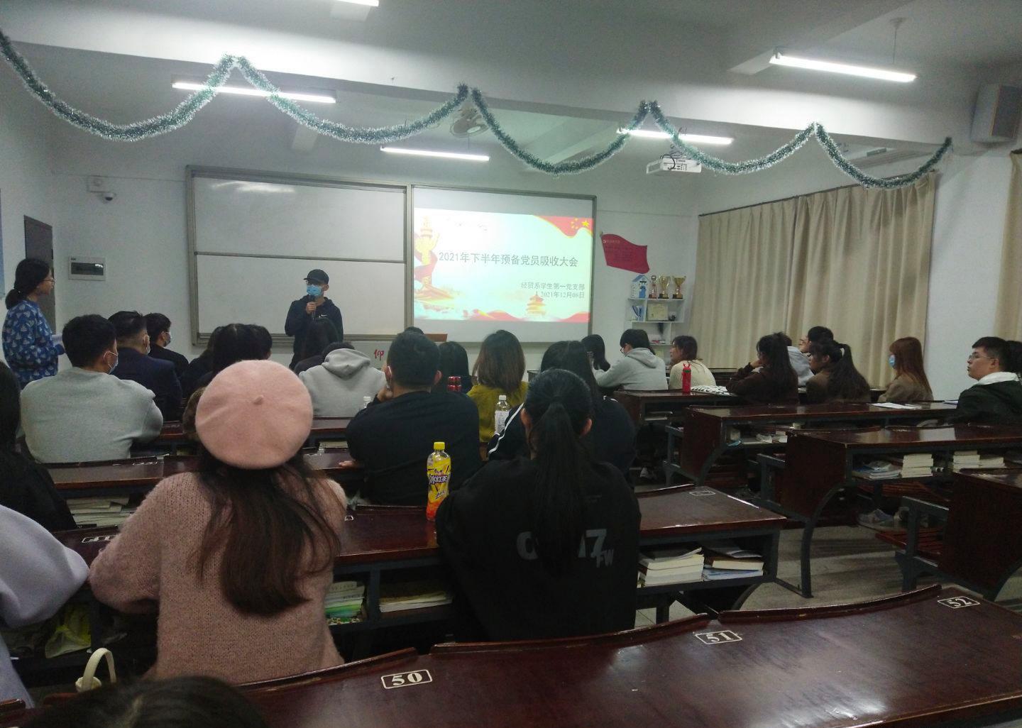2021年12月8日下午16:30,经贸系员工第一党支部于仰恩楼B2-205召开了预备党员接收大会。参加本次会议的有经贸系员工第一党支部全体党员及积极分子。