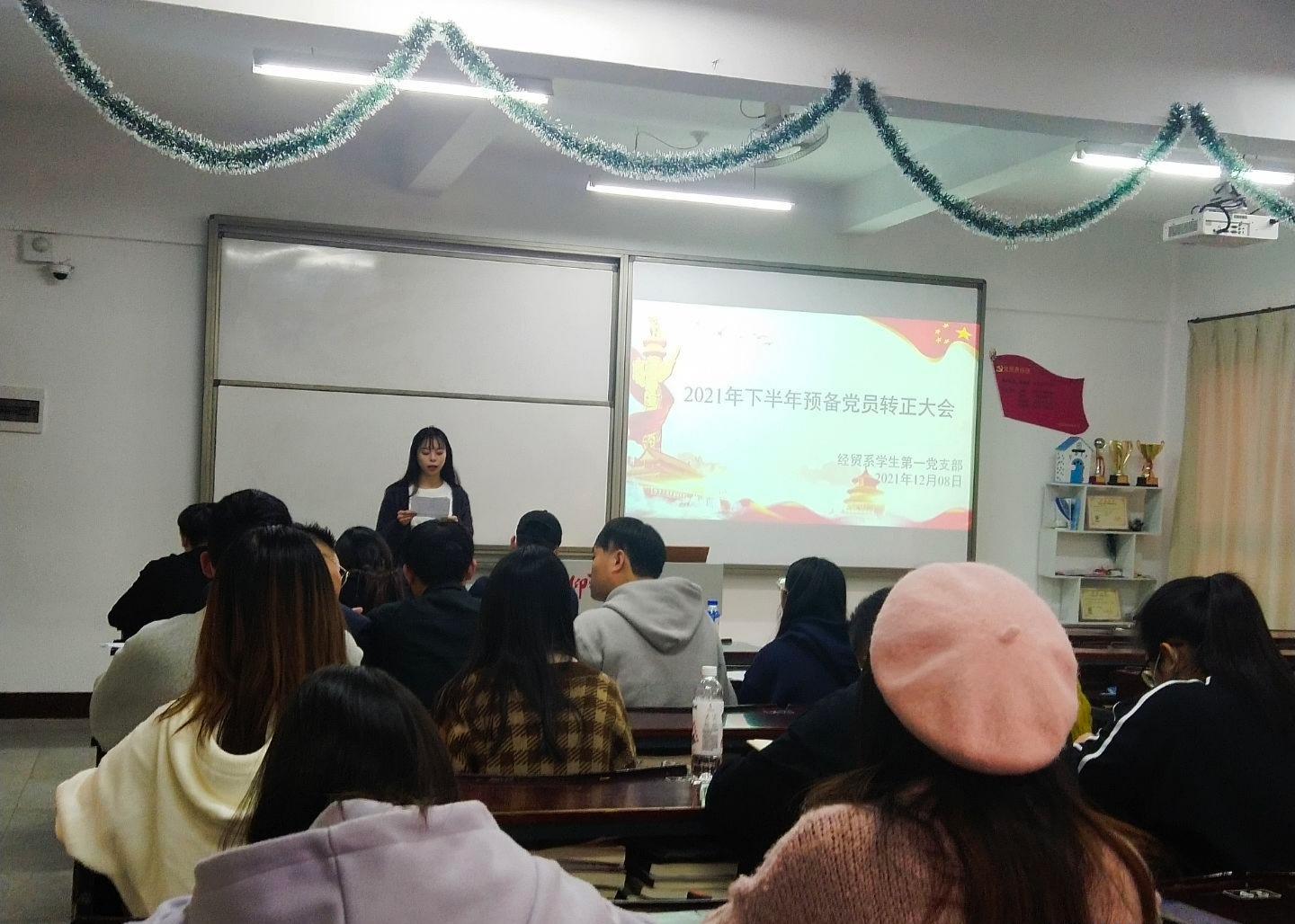 2021年12月8日下午15:55,经贸系员工第一党支部于仰恩楼B2-205召开了转正大会。参加本次会议的有经贸系员工第一党支部全体党员及预备党员。