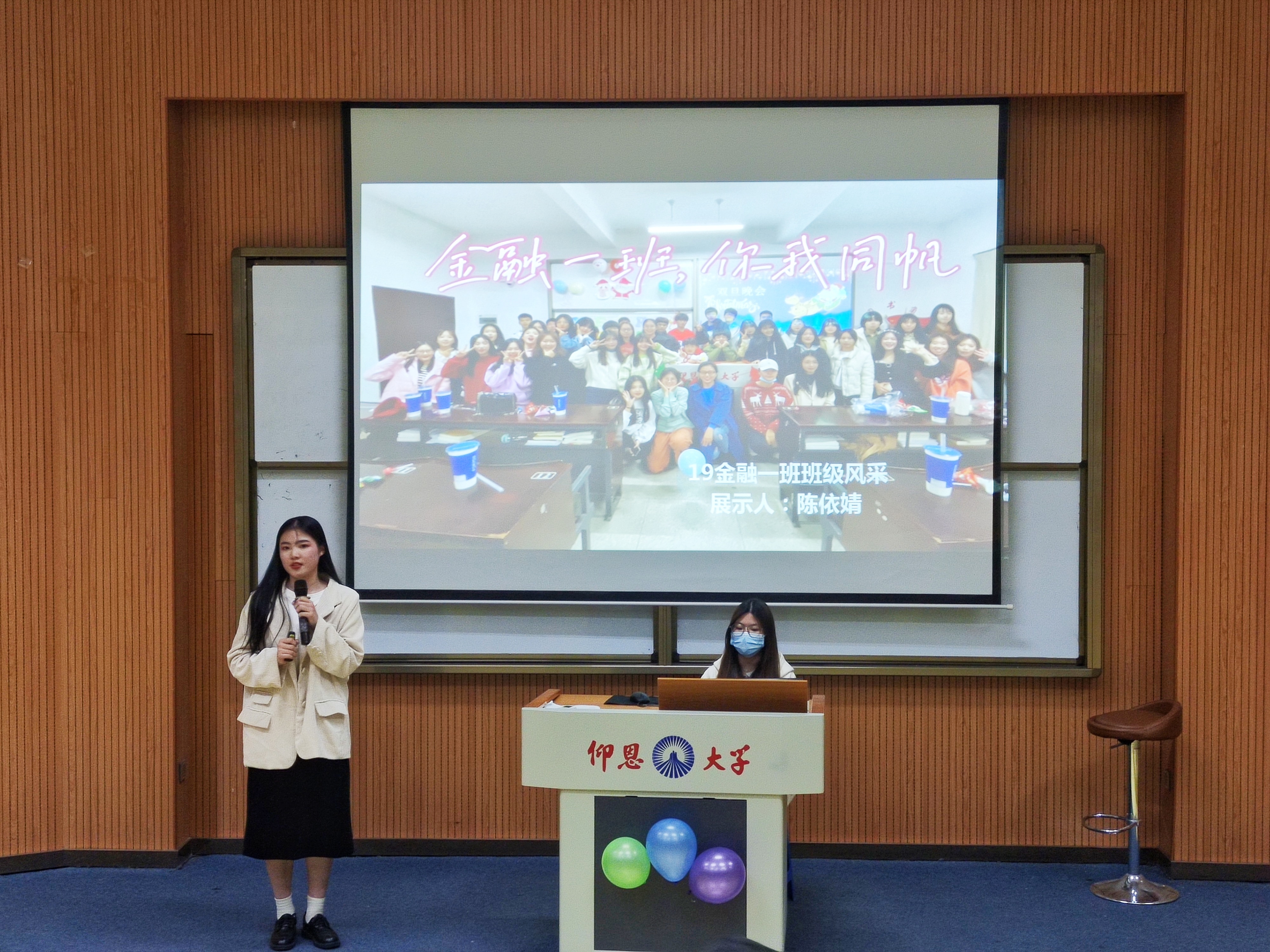 图1 员工进行班级介绍 首先由主持人主持召开班级风采大赛。各参赛班级以丰富的内容、多样的形式向与会师生展示班级风采。各参赛班级通过丰富的PPT展示,展现出积极向上的班风学风和丰富多彩的班级活动,绽放着在一次次激烈讨论中衍生的班级凝聚力、在一次次的排练、训练中取得的累累硕果、在一次次团结合作中共创的集体荣誉,在别出心裁的短片、唱歌、舞蹈、演讲等表演中更是炫出别样的班级文化,将现场的气氛一次又一次点燃。