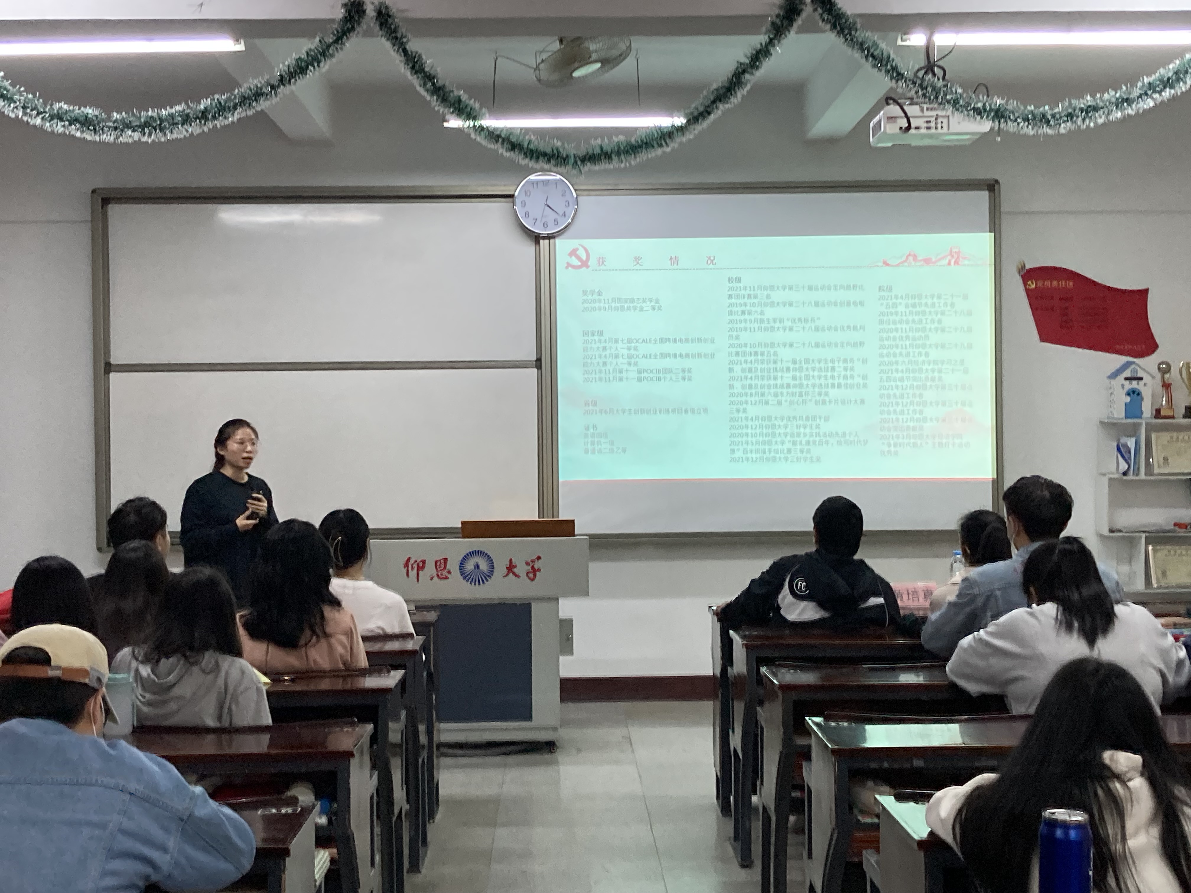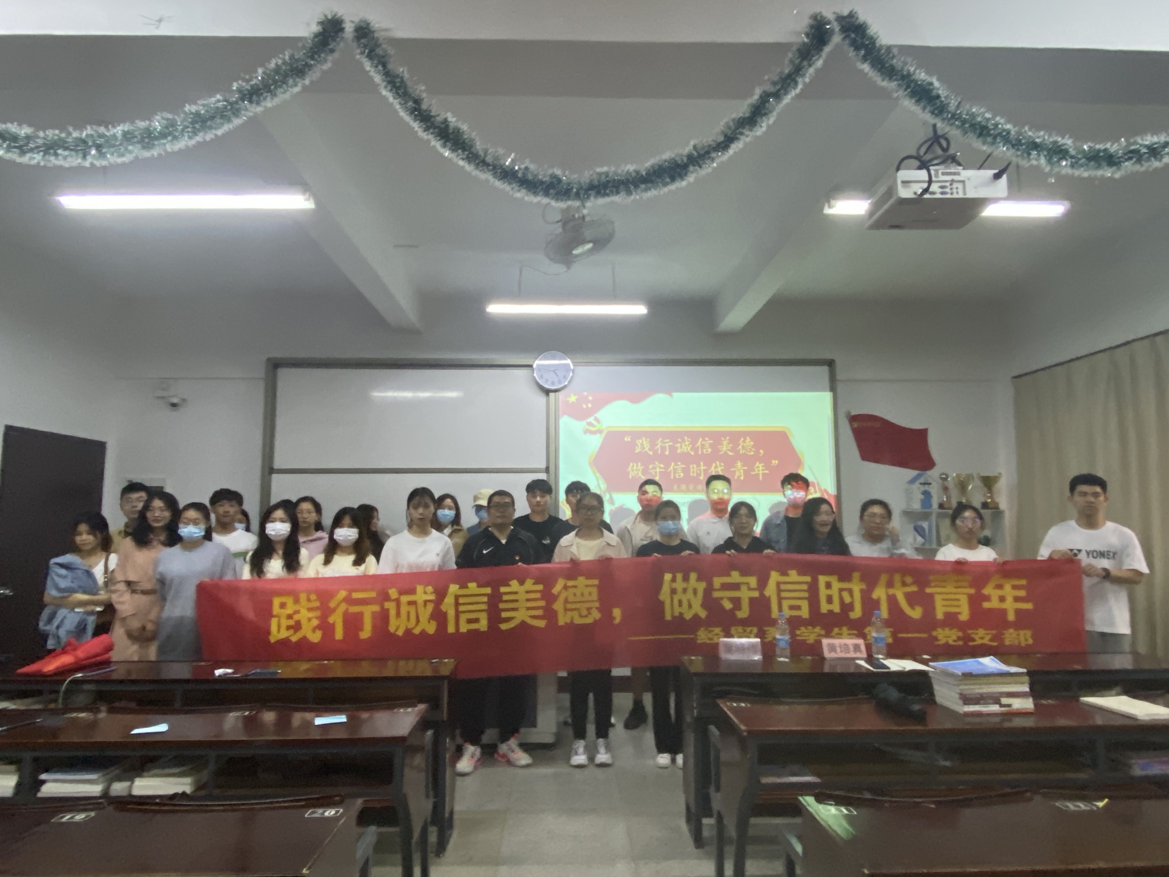 2021年12月16日下午16点,经贸系员工第一党支部于仰恩楼B2-205开展“践行诚信美德,做守信时代青年”活动。公司党总支书记吴晓伟出席此次活动,经贸系员工第一党支部全体党员及21级全体新生参与此次活动。本次活动由经贸系员工第一党支部干事陈丽珊主持。