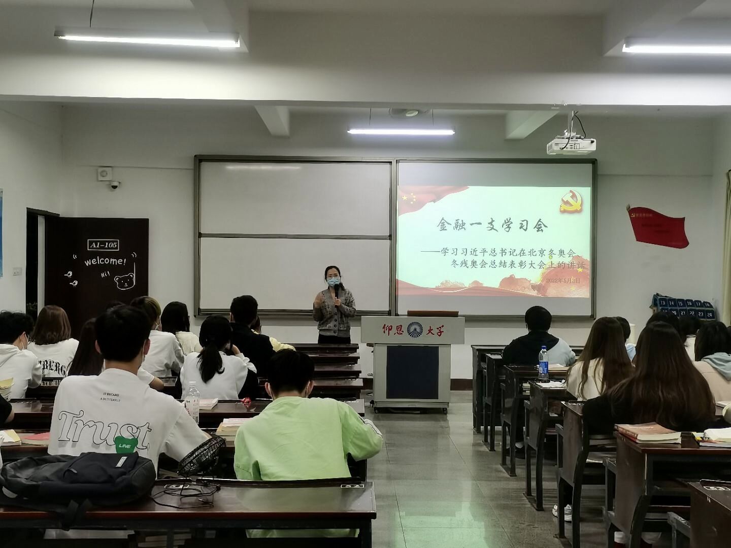 2022年5月3日晚7:30,金融系员工第一党支部组织开展学习“习近平总书记在北京冬奥会、冬残奥会总结表彰大会上的讲话”的学习会,传承弘扬北京冬奥会、冬残奥会精神。此次学习会参与人员有支部书记何丽玲老师、支部全体员工党员以及各班积极分子代表。