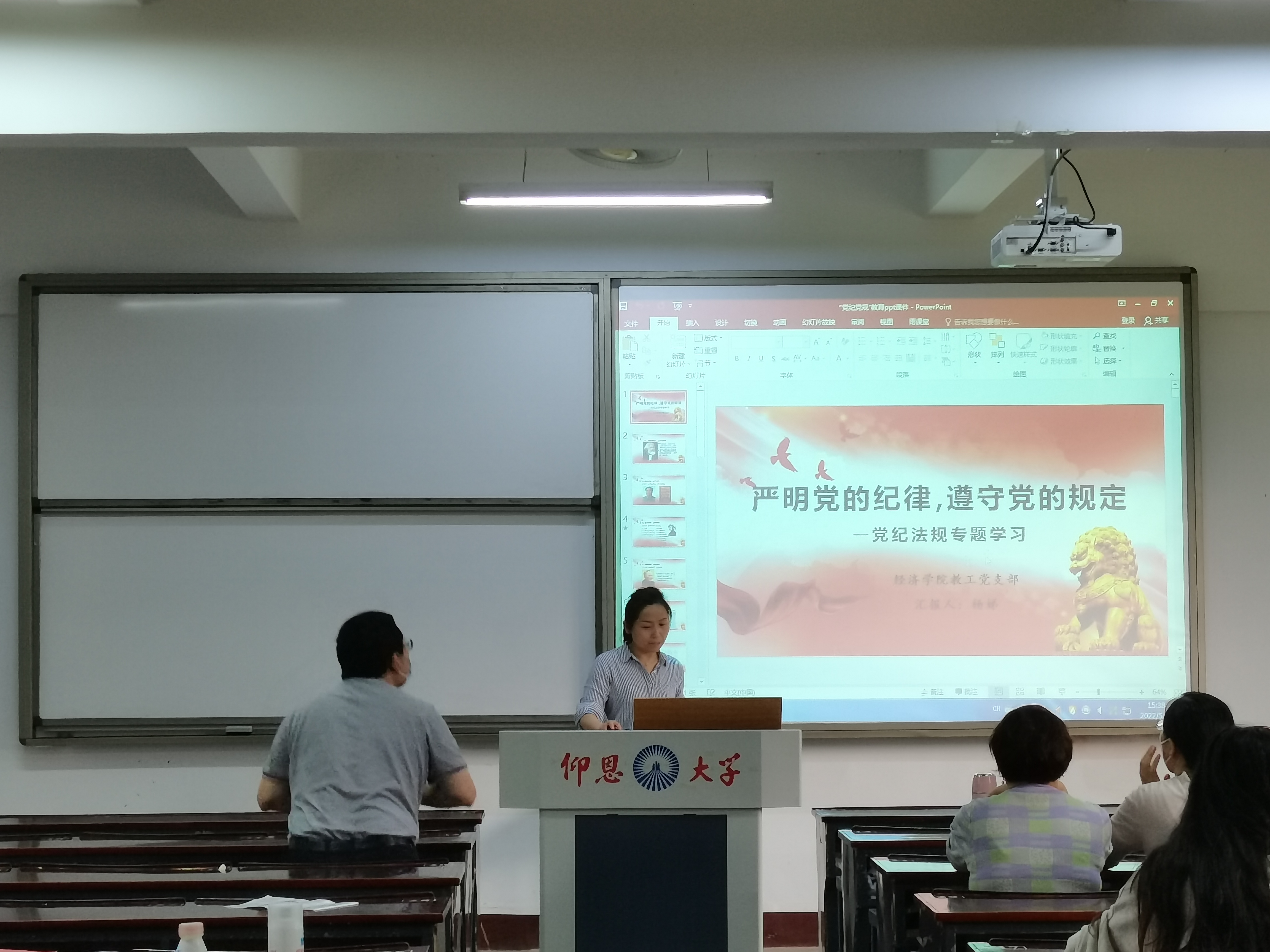 5月25日下午,PA视讯平台教工支部组织全体党员在仰恩楼A1-105开展党纪党规专题学习,加强教师党员政治纪律教育。此次学习会由支部书记杨娣同志主持。