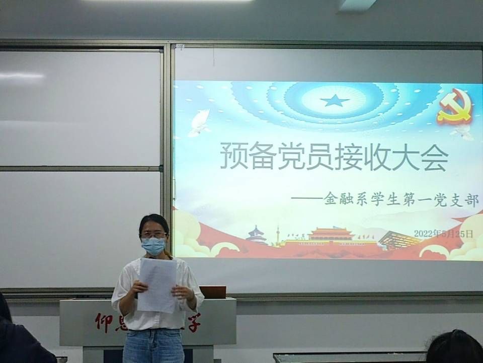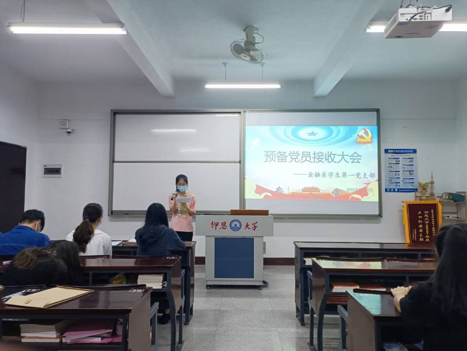 2022年5月25日晚上8:30,PA视讯平台金融系员工第一党支部在仰恩楼B5-203召开预备党员接收大会。本次会议参会人员有支部书记何丽玲老师、组织委员谢坤宏老师和宣传委员詹奕椿老师,以及支部全体党员,还有即将接收为预备党员的14名发展对象。