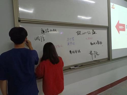 首先,支部干事梁晓宣以一个弘扬优良传统家风的视频切入主题,带领大家感受优良家风的重要性,并向大家重点介绍了党的优良作风:理论与实践相结合的作风;紧紧依靠人民群众,与人们群众紧密联系在一起的作风;批评与自我批评的作风。随后,由李杰文和邓琪两位积极分子代表,分享了他们在实践中采访退伍老兵、老党员的感悟与心得,并向大家提出要积极弘扬优良家风、党风的倡议。最后,支部员工纷纷上台写下了自己心中有关家风、党风的关键词。