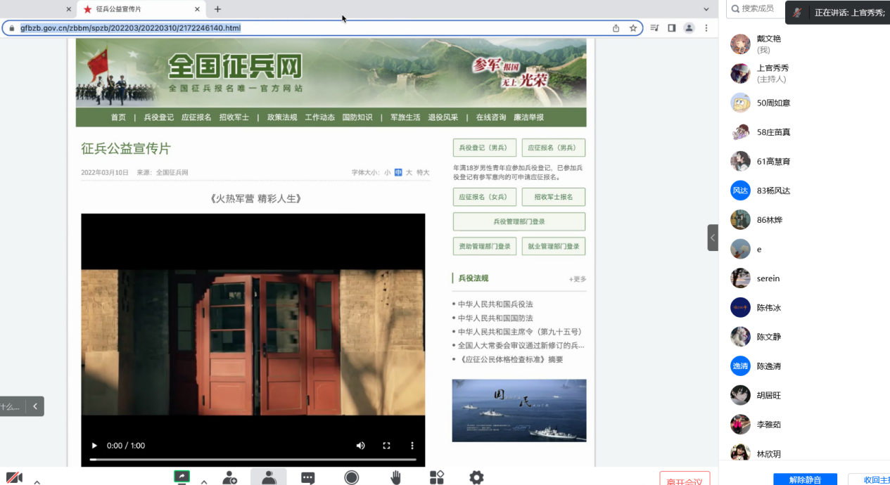 强国必先强军,军强才能国安。为壮大我国的国防队伍,上好高校员工的思政课和国防教育课,公司积极响应公司号召,于2022年12月22日组织各班级在线上开展“传承红色基因,携笔从戎报国”主题班会。