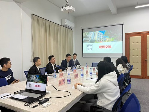 会议伊始,双方就毕业生就业现状展开讨论,并由公司播放本校宣传片,让对方更深入地了解本校本院的特色与成就。随后,吴晓伟老师提出目前就业问题的严峻,并指出近年来公司员工就业不够多元化的问题。“如何让员工走出去,不给企业造成压力”成为双方需要共同攻克的难题。接着,蔡少泽经理向我方介绍了校企的合作方向,提出“专项扶持资金”项目,并由吴贵洲总监介绍中国人寿新筹建部门——保单服务经理的招募计划,为公司优秀的应届毕业生提供多一个的工作机会。
