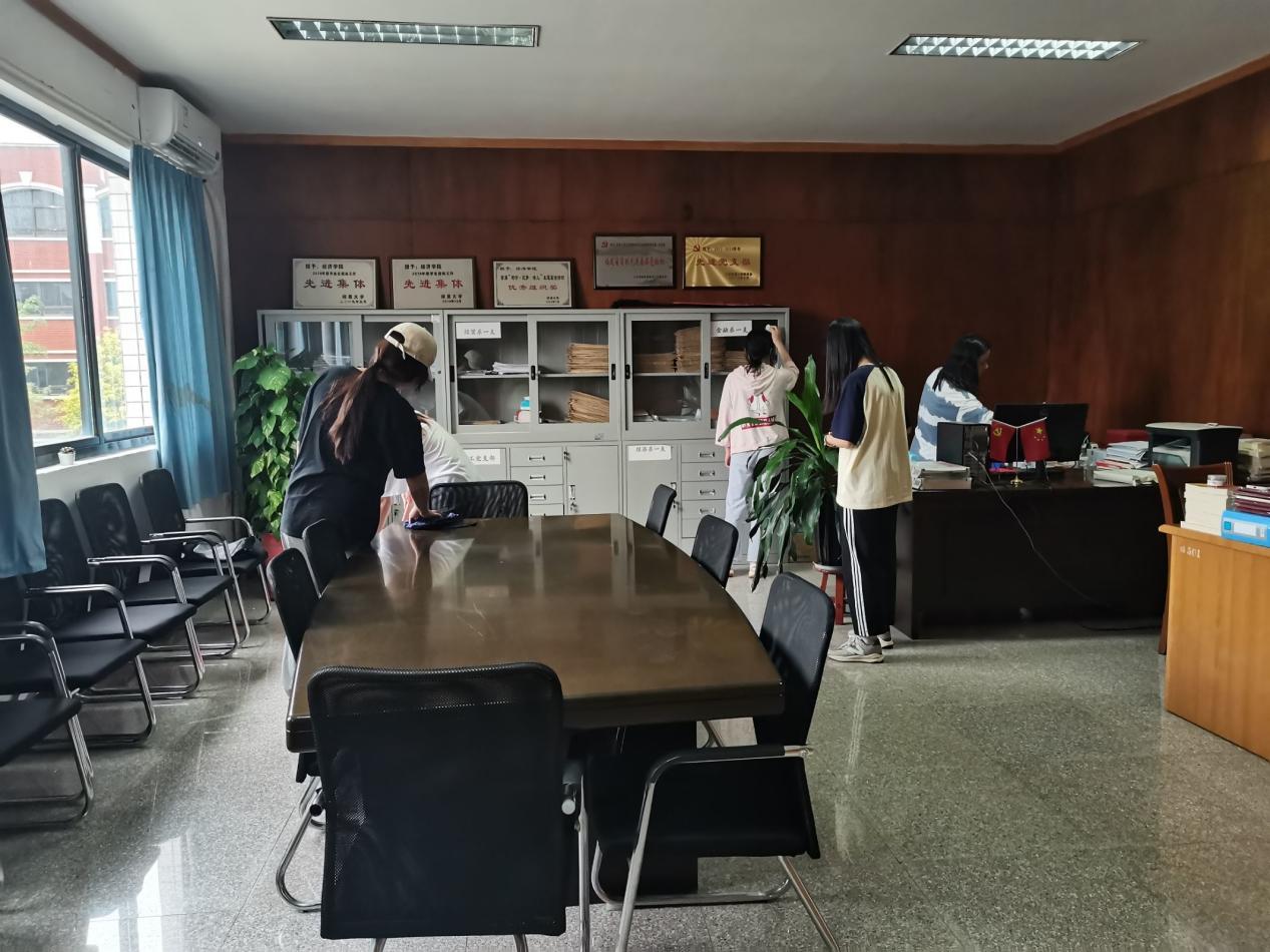 为了引导同学们养成文明健康绿色环保的生活方式,营造人人参与爱国卫生运动的良好校园氛围,2023年4月20日下午16:00,金融系员工第一党支部在校园里开展“第35个爱国卫生月”活动,志愿服务打扫公司总支办公室与辅导员办公室。此次活动的参与人员为金融系员工第一党支部全体党员同志。