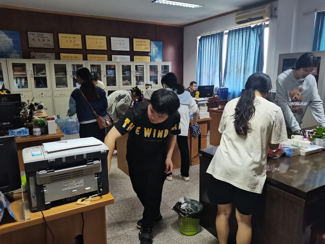 图2 党员同志们在打扫辅导员办公室