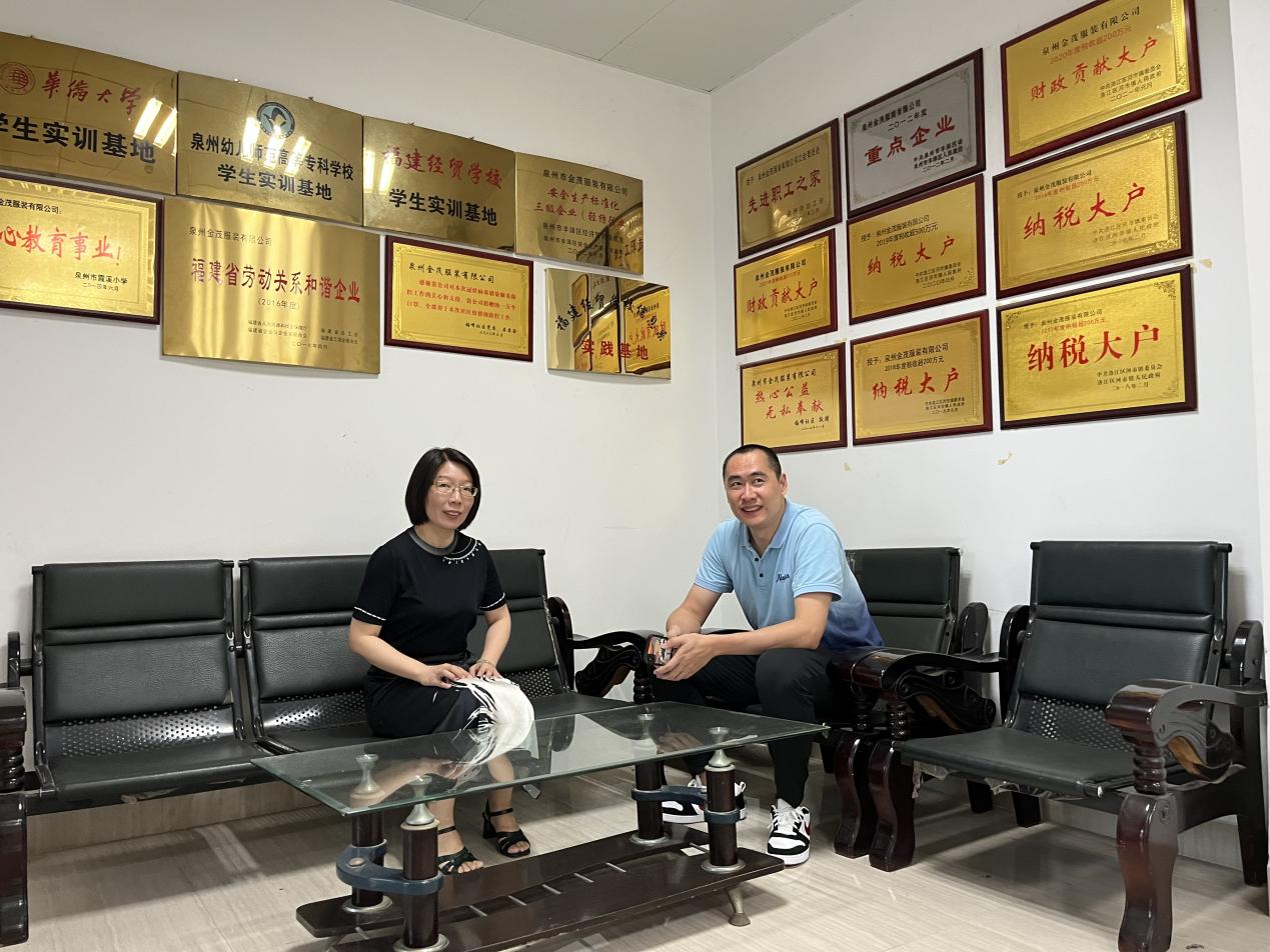 座谈会上张雪梅对受访企业的热情接待表示感谢,并介绍了公司办学历史、办学定位、公司专业设置、毕业生就业等基本情况,希望以此次“访企拓岗”活动为契机,深化沟通交流,拓宽合作领域,将高校人才资源优势与企业需求相结合,实现员工高质量就业,助力泉州传统优势产业的转型升级。