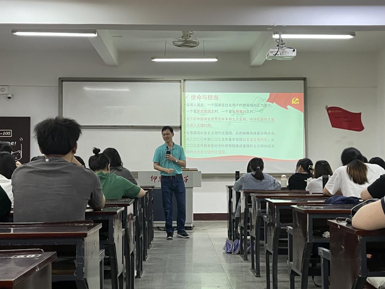 党课开始,何丽玲老师简单介绍了此次党课的流程和意义,强调了学习党的知识、党的思想的重要性,要求大家认真听讲,不断加强理论知识学习。党课中,孙保献老师对“中国式现代化”进行全面讲解,从理论背景、发展前沿、理论依据、理论含义及理论内涵等五个方面阐述了中国式现代化,指出了中国式现代化是党领导下的伟大成果,其中蕴含着丰富的党的知识、党的思想。在孙保献老师的讲解下,同学们更加清晰更加全面地认识了中国式现代化,为大家指明了前进的方向,让人受益匪浅。