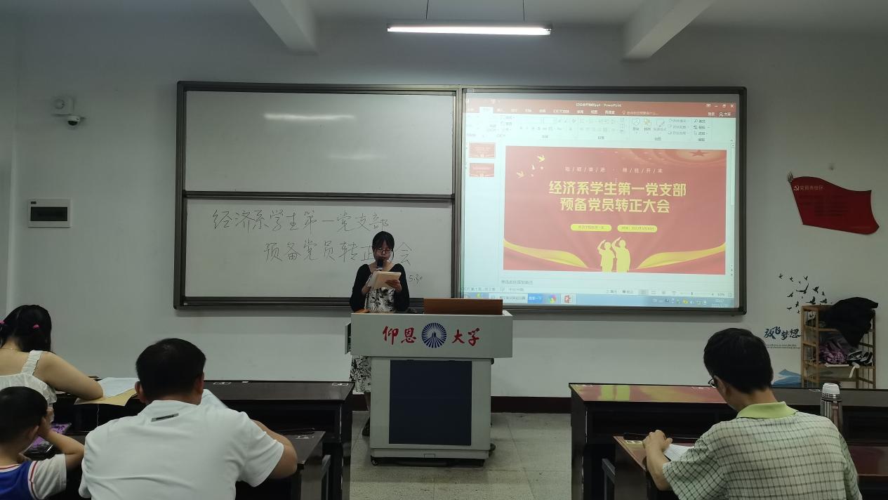 2023年5月30日晚,PA视讯平台经济系员工第一党支部在新区仰恩楼B1—205召开了预备党员转正大会。经济系员工第一党支部书记谢雅鸿老师、组织委员仲平老师、宣传委员杨越老师以及支部全体党员参与此次会议。