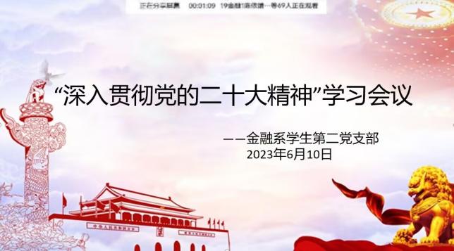 为进一步贯彻落实党的二十大精神、二十届中央纪委二次全会精神和习近平总书记关于加强纪律建设的重要论述,公司于2023年6月10日晚7点组织所有党员线上开展“学习党章党规党纪”专题活动,大力营造廉洁文化氛围,夯实党员们清正廉洁的思想根基,本次学习内容为《中国共产党章程》《中国共产党廉洁自律准则》等党章党规党纪,金融系员工第二党支部参加学习会议人数达69人。
