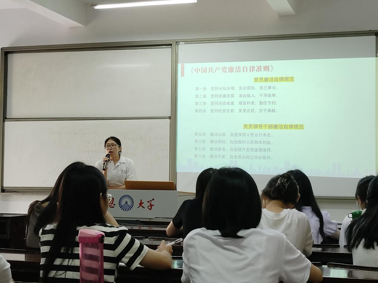 为学习贯彻习近平新时代中国特色社会主义思想主题教育,加强党员纪律精神建设,筑牢二十大根本,2023年6月12日,经贸系员工第一党支部在仰恩楼A3-103组织召开“书记好党课”活动,此次党课主题为“守纪律讲规矩做合格党员”学习会。