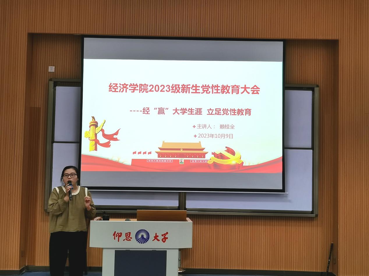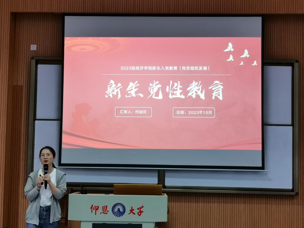 图1 何丽玲老师为新生讲解入党的流程