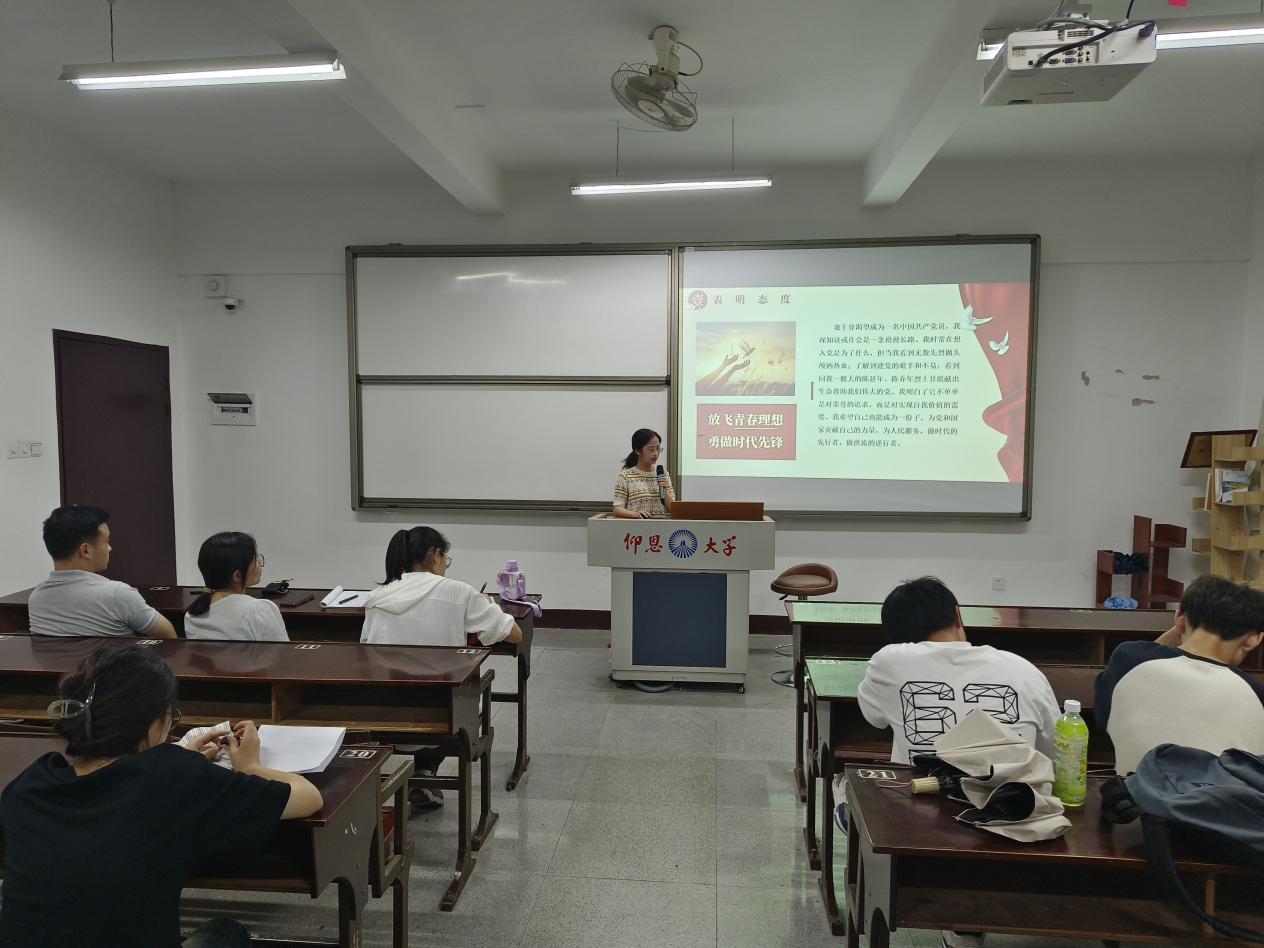 首先,李荣美同志对本次会议的议程作简要介绍。随后,10名推优对象依次上台进行汇报其自身个人情况、入党决心并表明态度,就支部支委所提出的问题进行答辩,由支委同志考察其入党动机。最后,支委同志就推优对象谈话内容进行讨论。