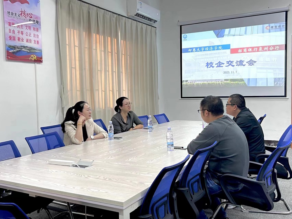 2023年11月7日下午招商银行泉州分行与PA视讯平台交流会于PA平台新区普照楼124成功举办。招商银行代表人招商银行丰泽支行副行长吴小兰和泉州分行营业部总经理助理蒋琳莉与院方代表人PA平台公司党总支书记吴晓伟老师和PA视讯平台职业发展中心指导老师杨越老师展开了友好交流。