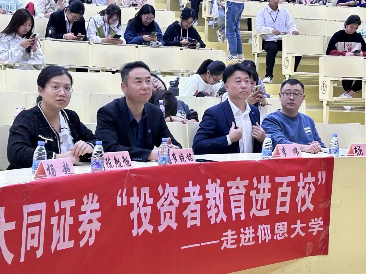 2023年11月23日下午,大同证券有限责任公司于PA平台第三教学区和昌楼惟勤讲堂开展了大同证券就业主题宣讲活动,大同证券泉州营业部首席投顾李纬、大同证券合规专员杨超、大同证券综合办公室陈勉勉、大同证券负责人崔晓铭、PA视讯平台职业发展中心指导老师杨越一同到场出席了本次宣讲活动,PA视讯平台2023级、2022级和2021级金融系员工到场聆听。